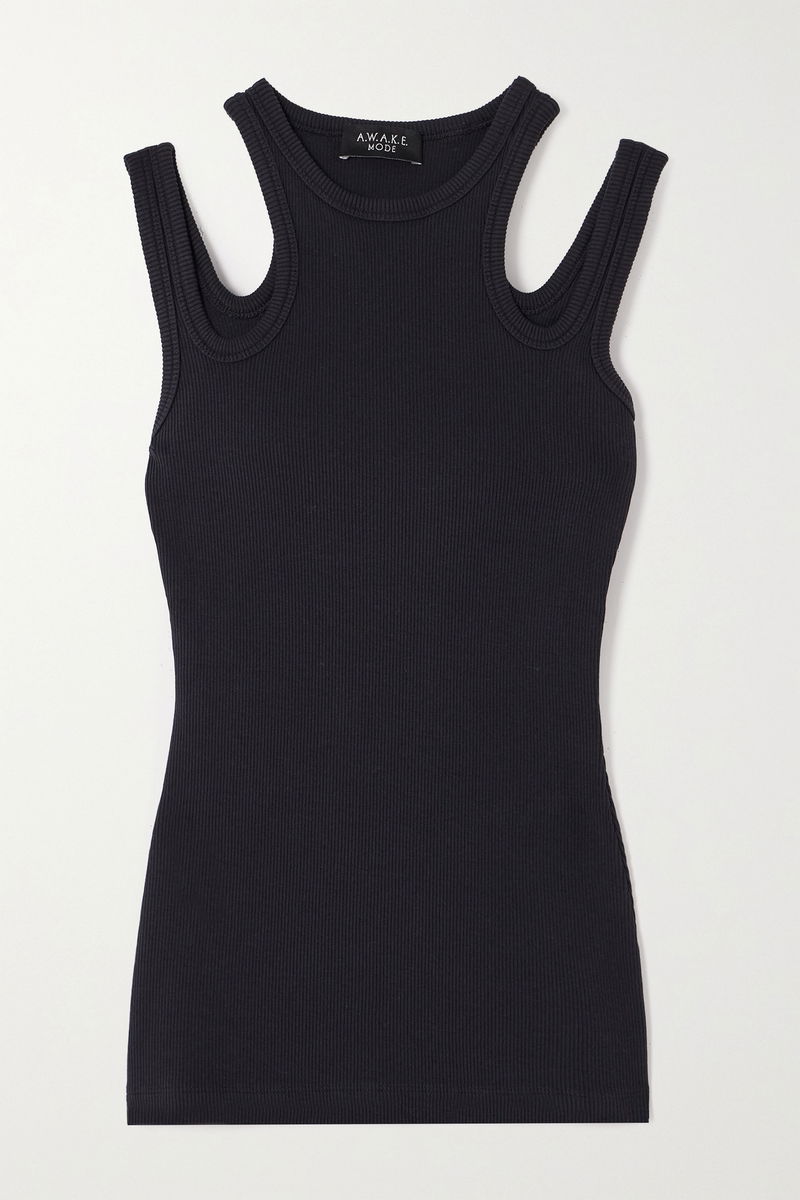 A.W.A.K.E. MODE reworks the classic tank with its signature cutout panels. This one is made from comfy stretch-cotton jersey with a ribbed texture and has a high, round neckline. Tuck yours into a pair of jeans or tailored pants.