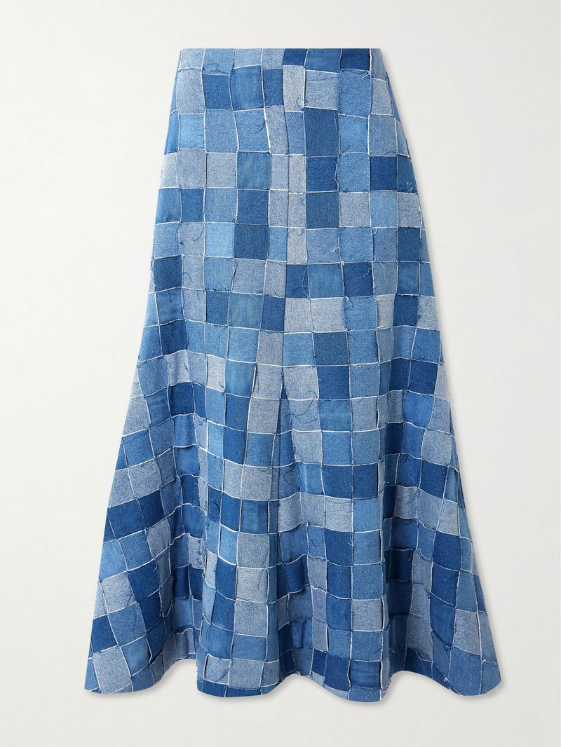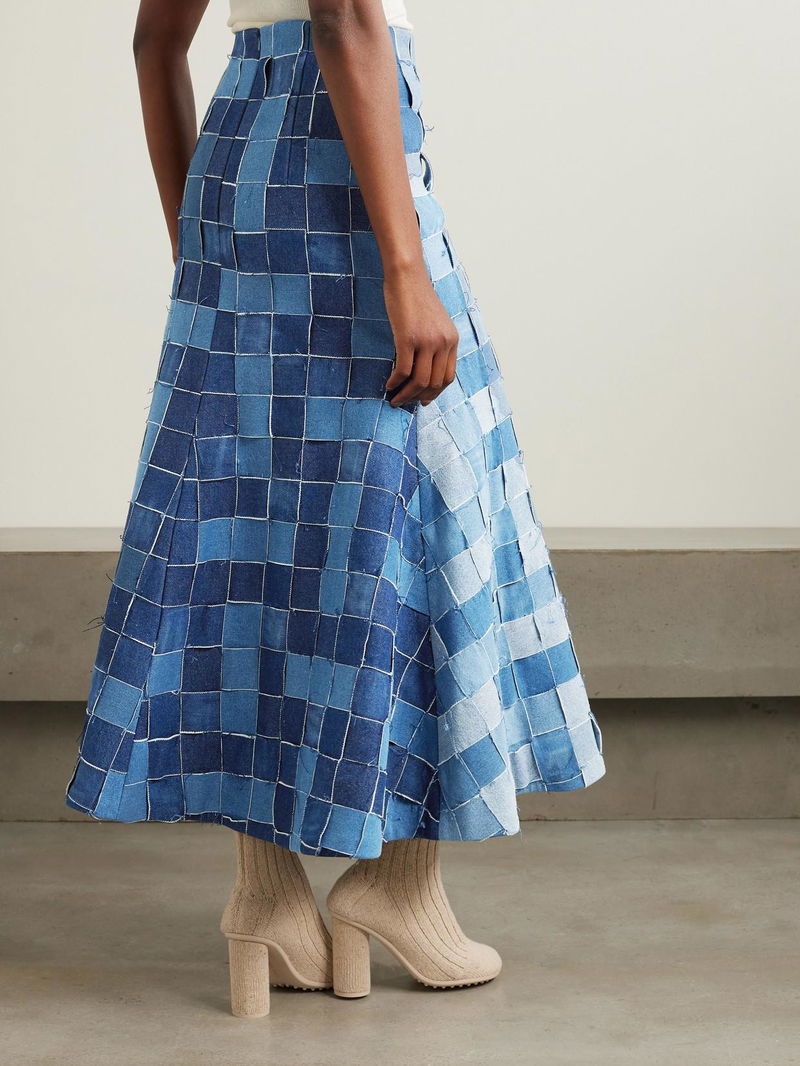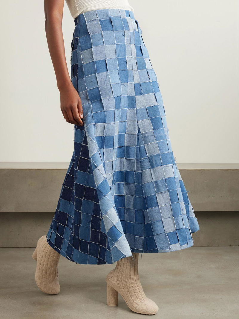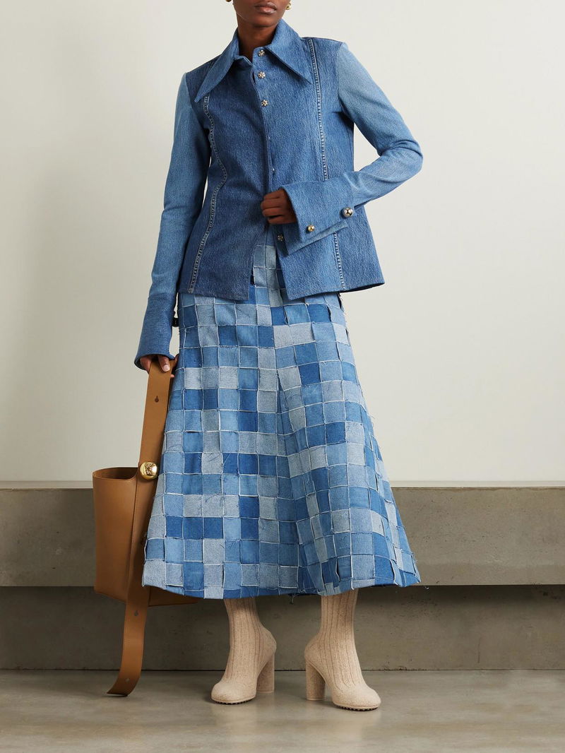 A.W.A.K.E. MODE's skirt is constructed from swatches of upcycled denim that are repurposed from vintage garments, so each one is truly one-of-a-kind. It's fitted through the waist and hips before flaring out to a classic A-line shape. Wear yours with the coordinating top or a leather jacket and boots.