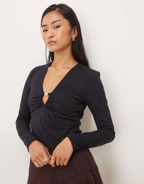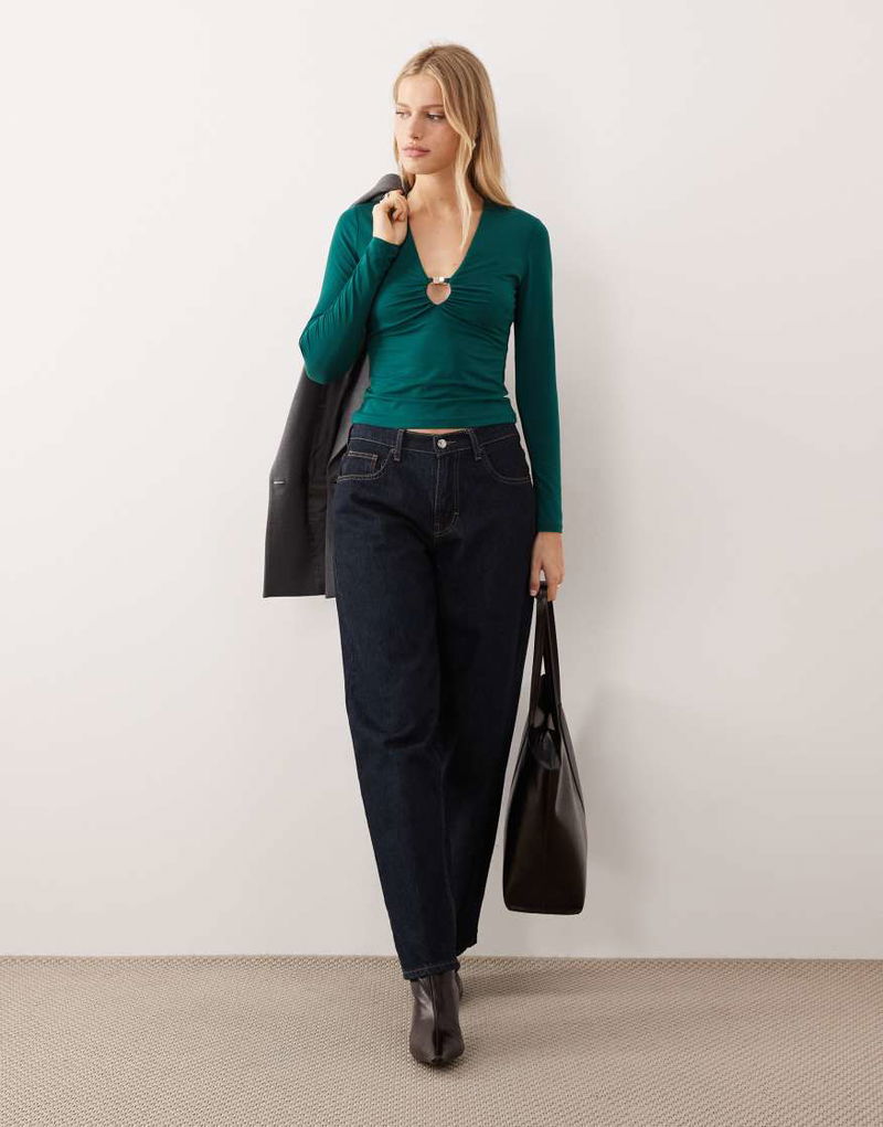Abercrombie & Fitch Bra Free V Neck Long Sleeve Hardware Top In Dark Green