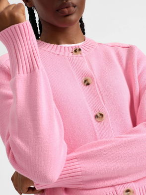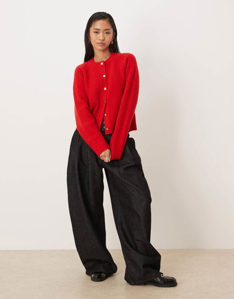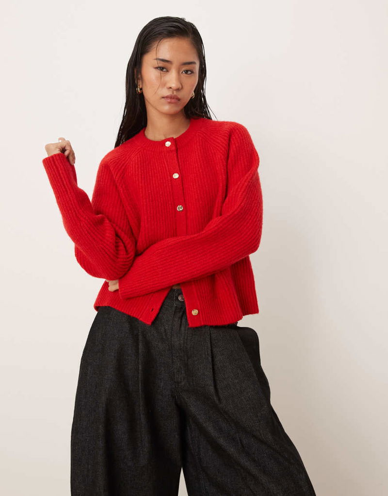 Abercrombie & Fitch Crew Neck Button Up Cardigan In Red