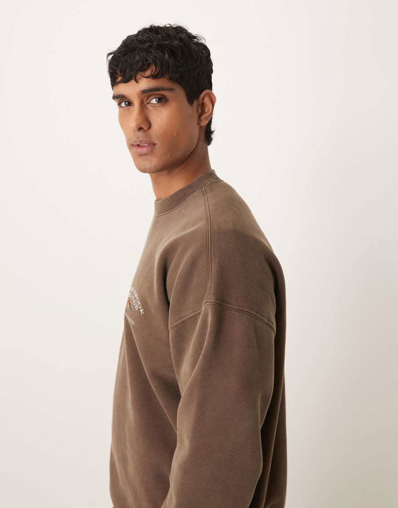 Abercrombie & Fitch Embriodered Graphic Logo Sweatshirt In Brown