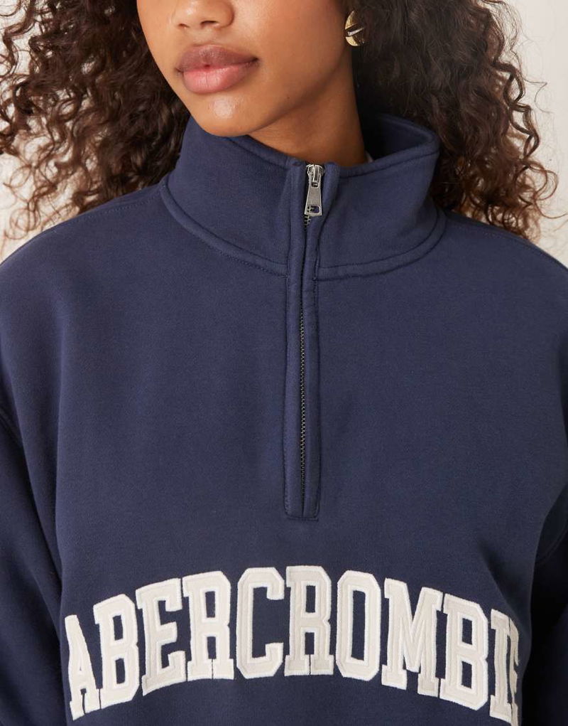 Abercrombie & Fitch Front Logo Fleece Quarter Zip Sweatshirt In Navy