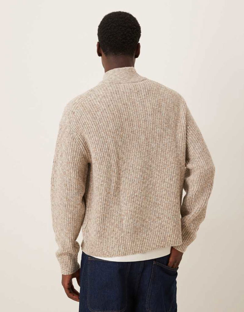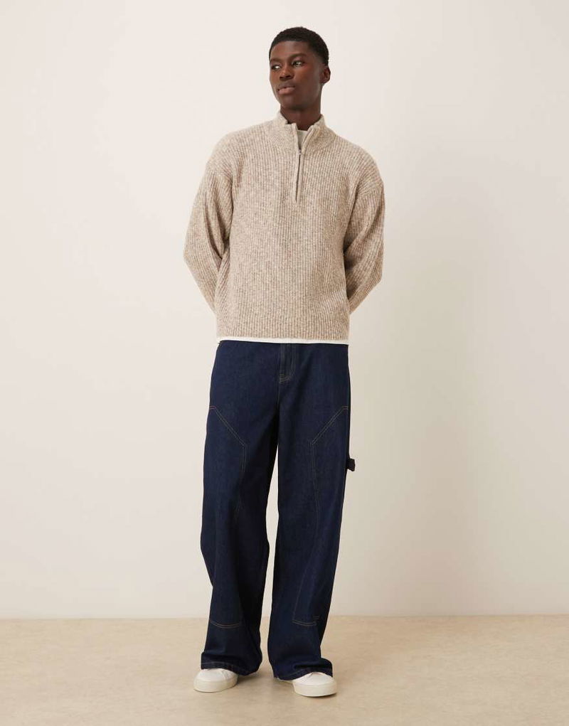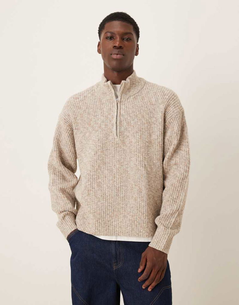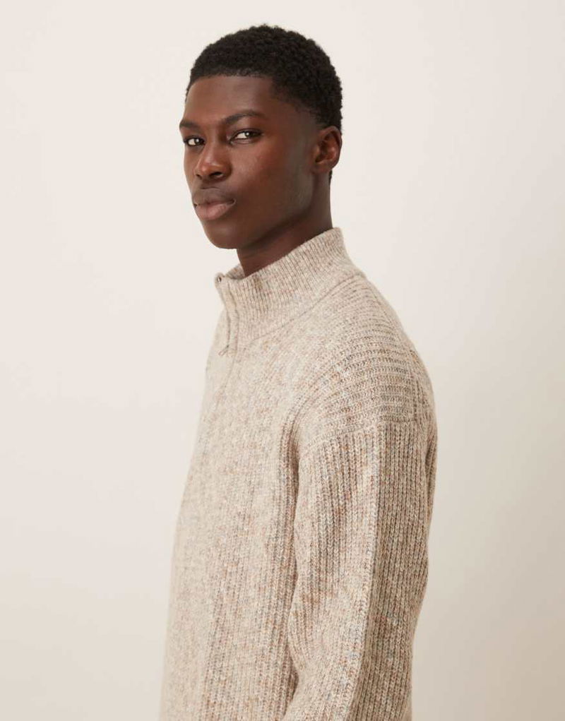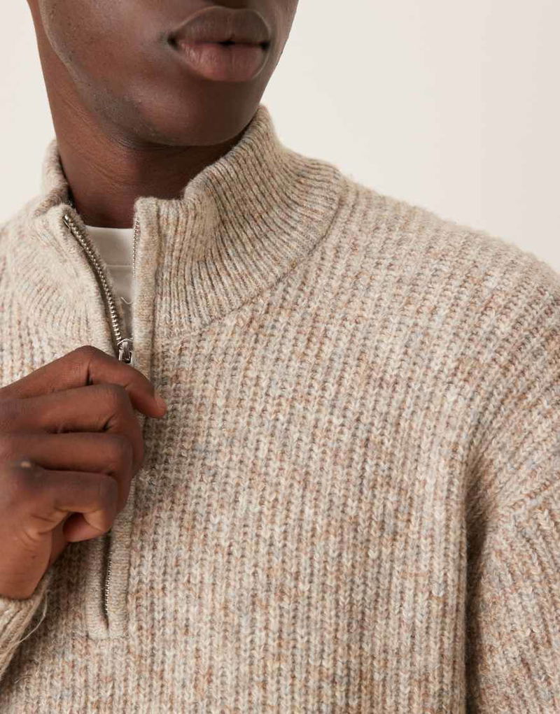 Abercrombie & Fitch Knitted Quarter Zip Cosy Jumper In Cream