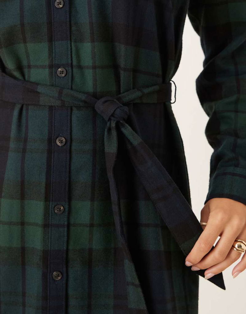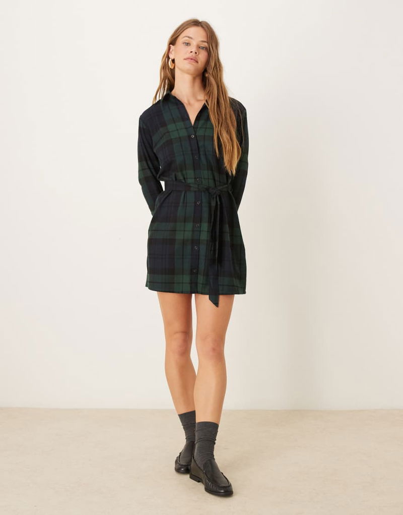 Abercrombie & Fitch Long Barrel Sleeve Cinched Mini Dress In Navy Check