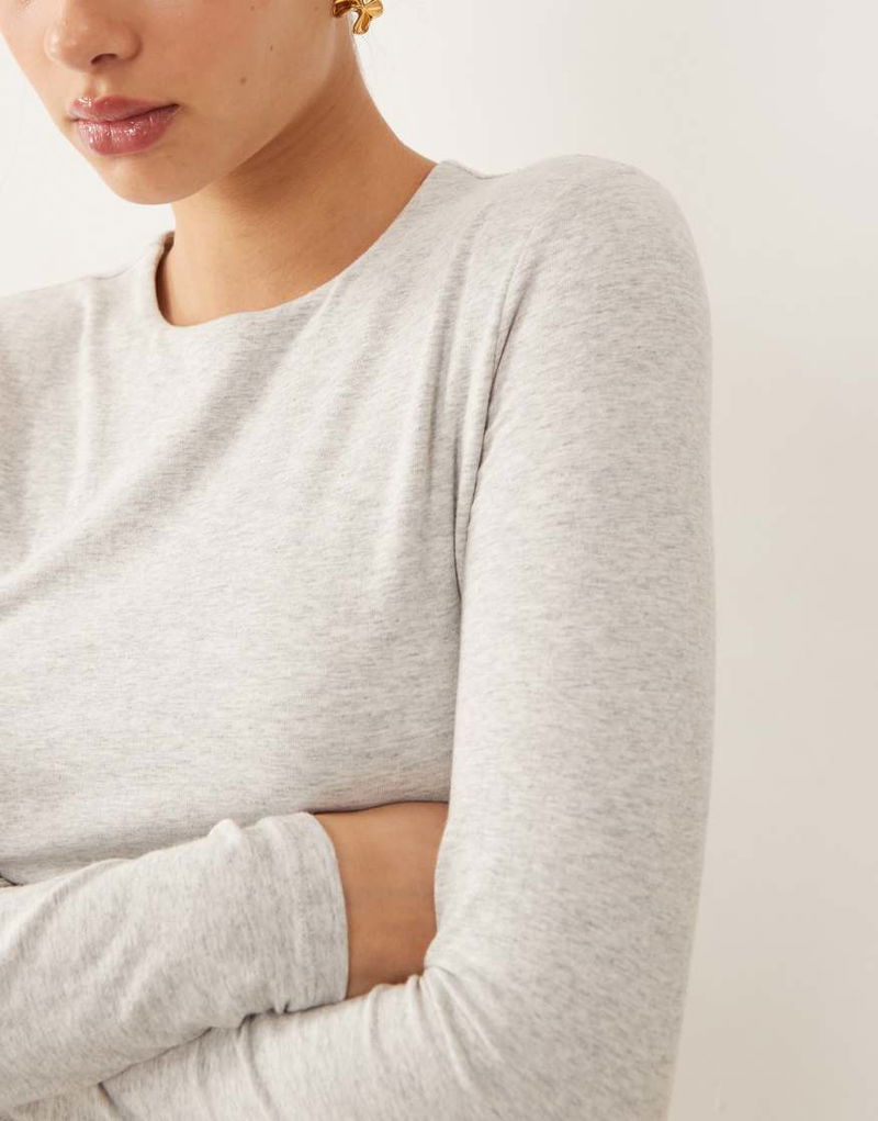 Abercrombie & Fitch Long Sleeve Baby Tee In Grey