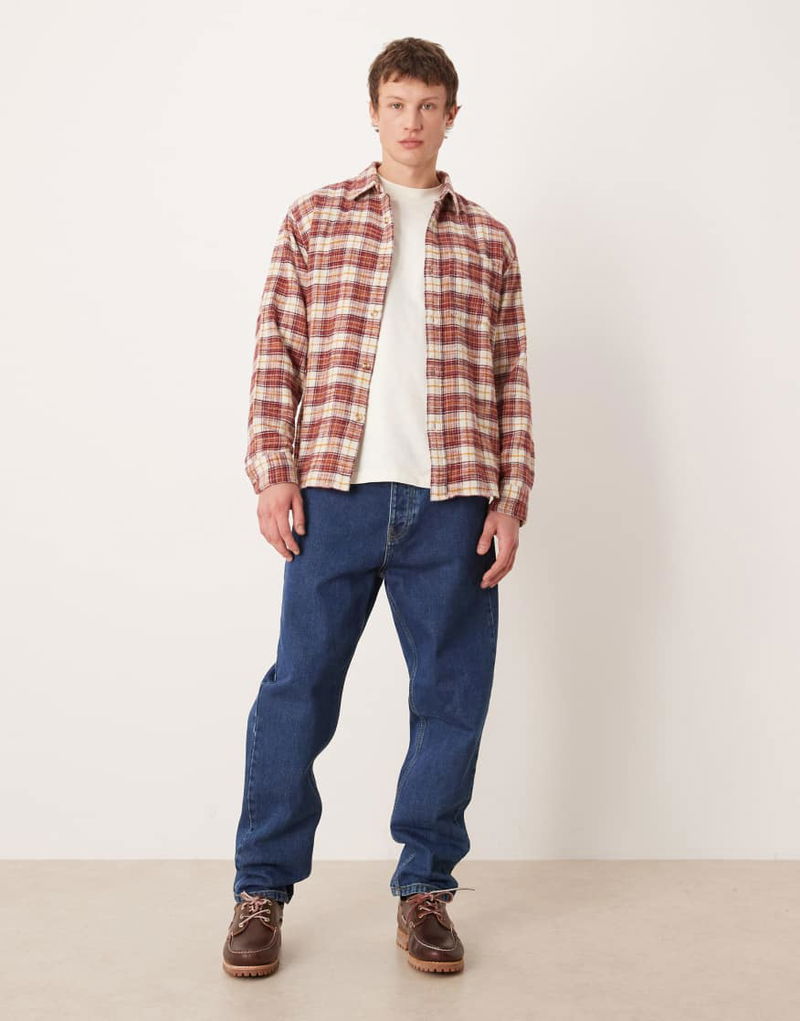 Abercrombie & Fitch Long Sleeve Flannel Shirt In Red Plaid