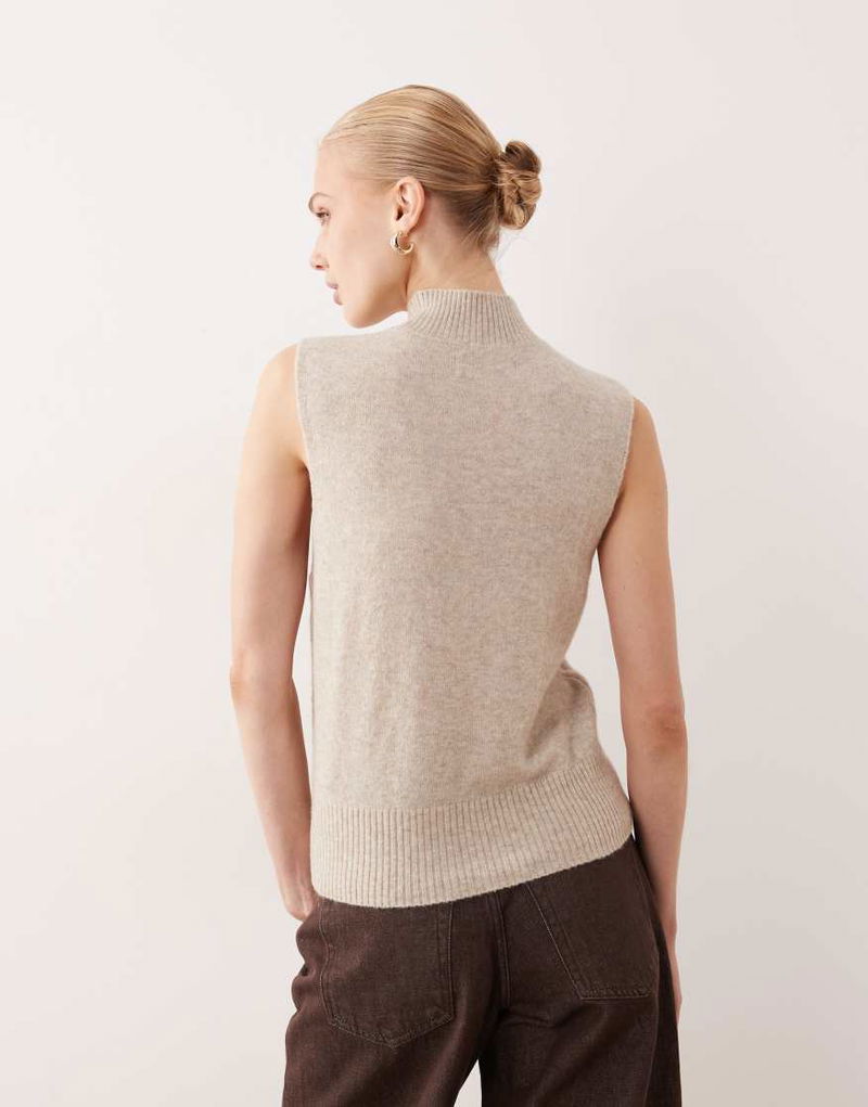 Abercrombie & Fitch Mock Neck Sweater Vest In Beige