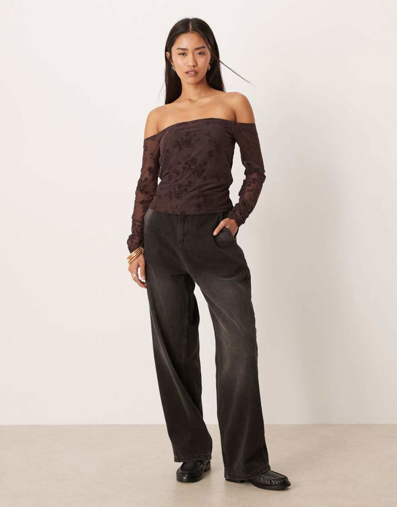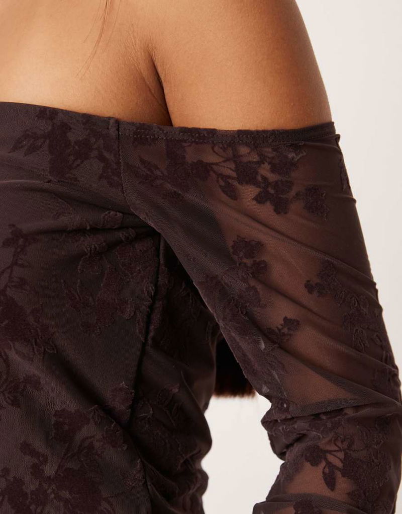 Abercrombie & Fitch Off The Shoulder Bra Free Lace Top In Brown