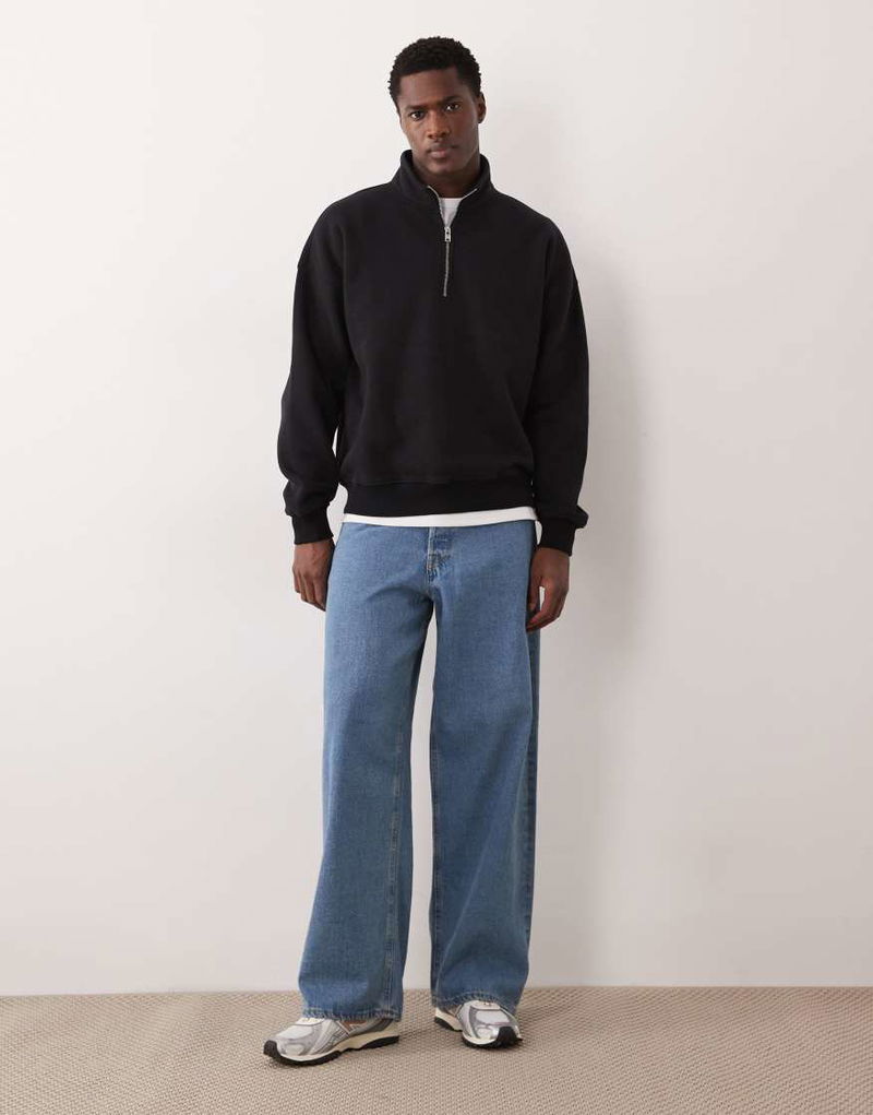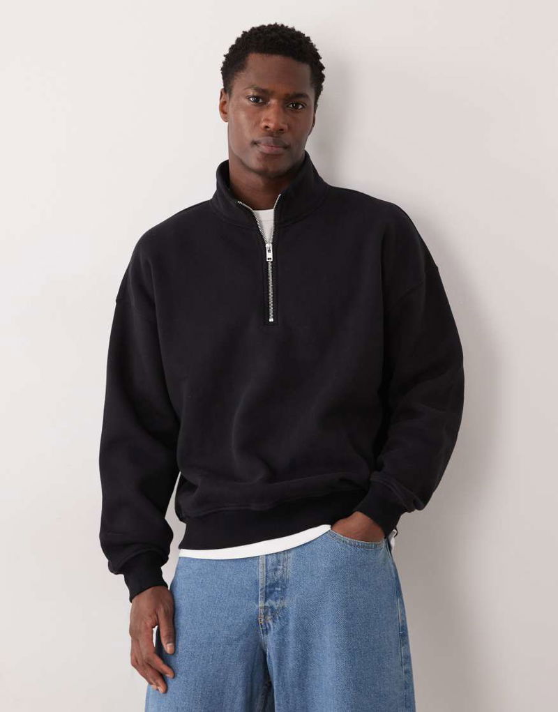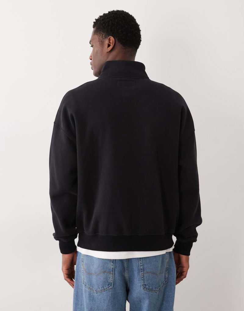 Abercrombie & Fitch Premium Script Logo 1/4 Zip Sweat Top In Black