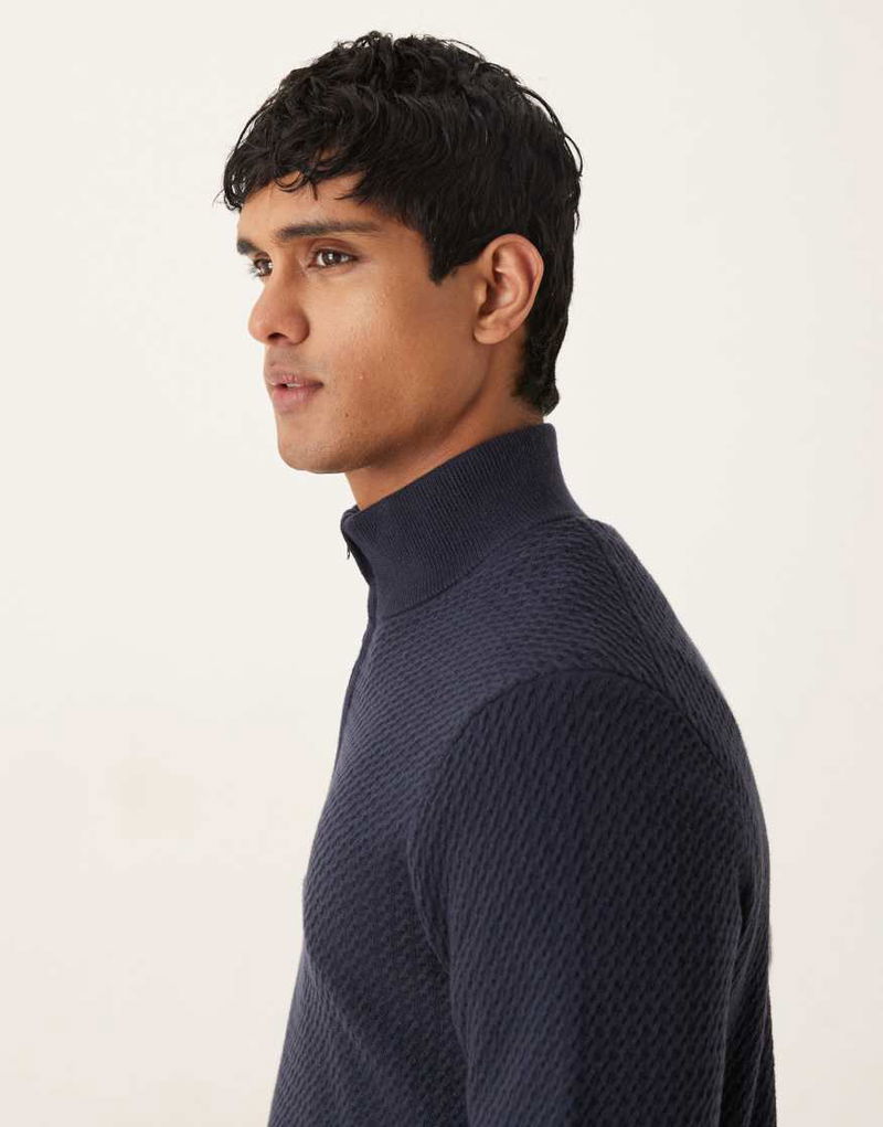 Abercrombie & Fitch Quarter Zip Jumper In Navy