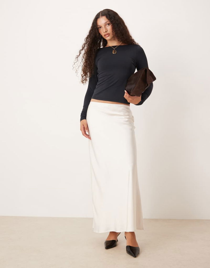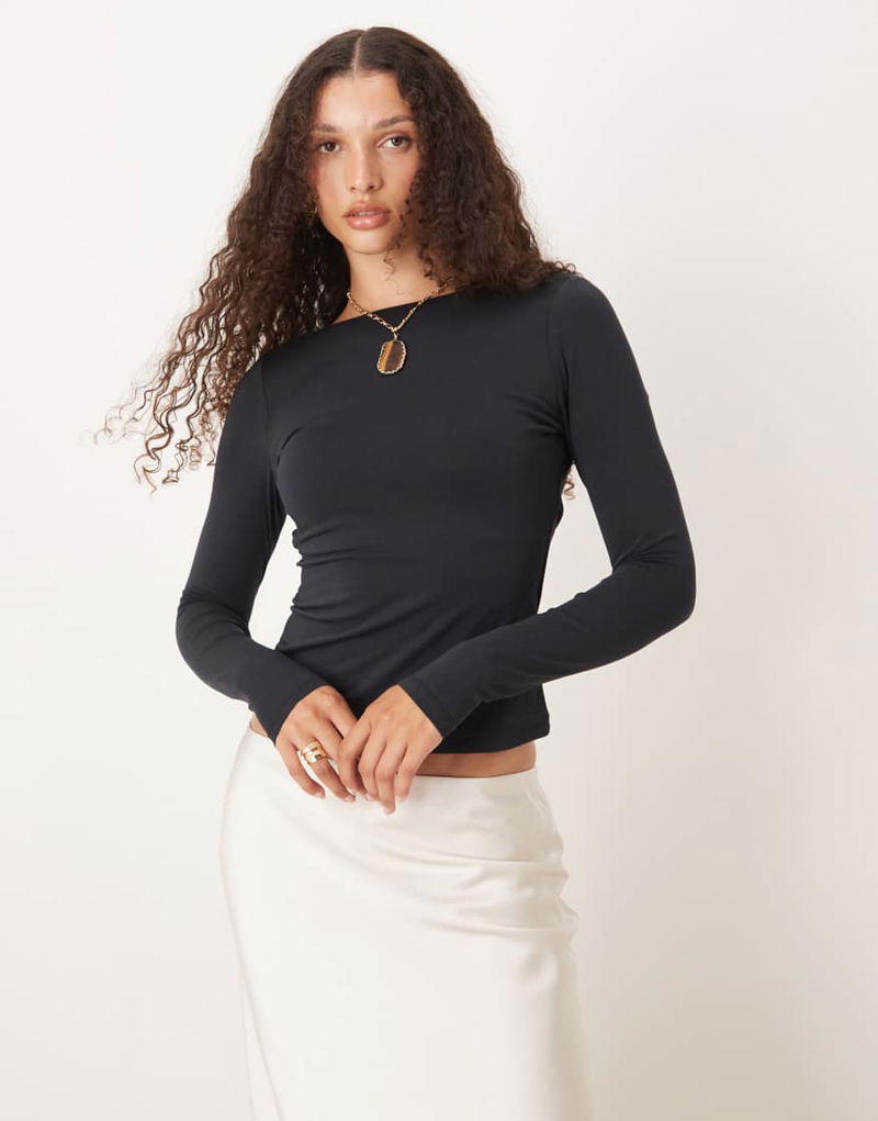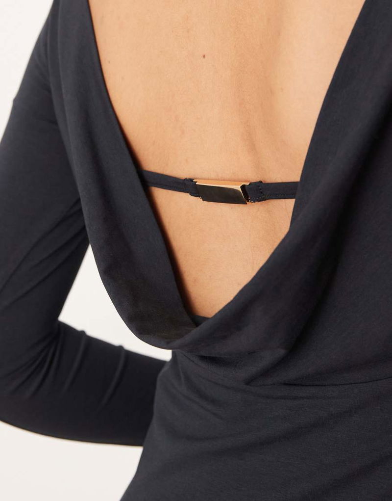 Abercrombie & Fitch Slash Neck Cowl Back Long Sleeve Top In Black