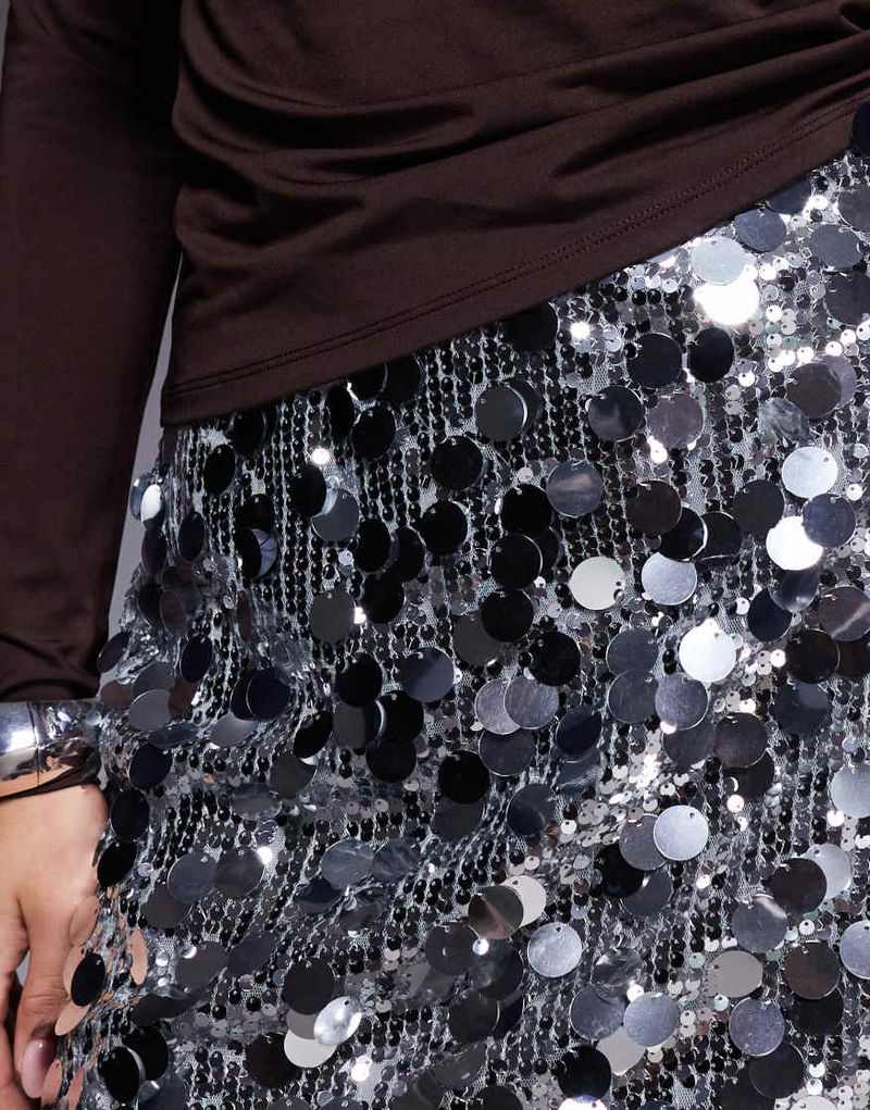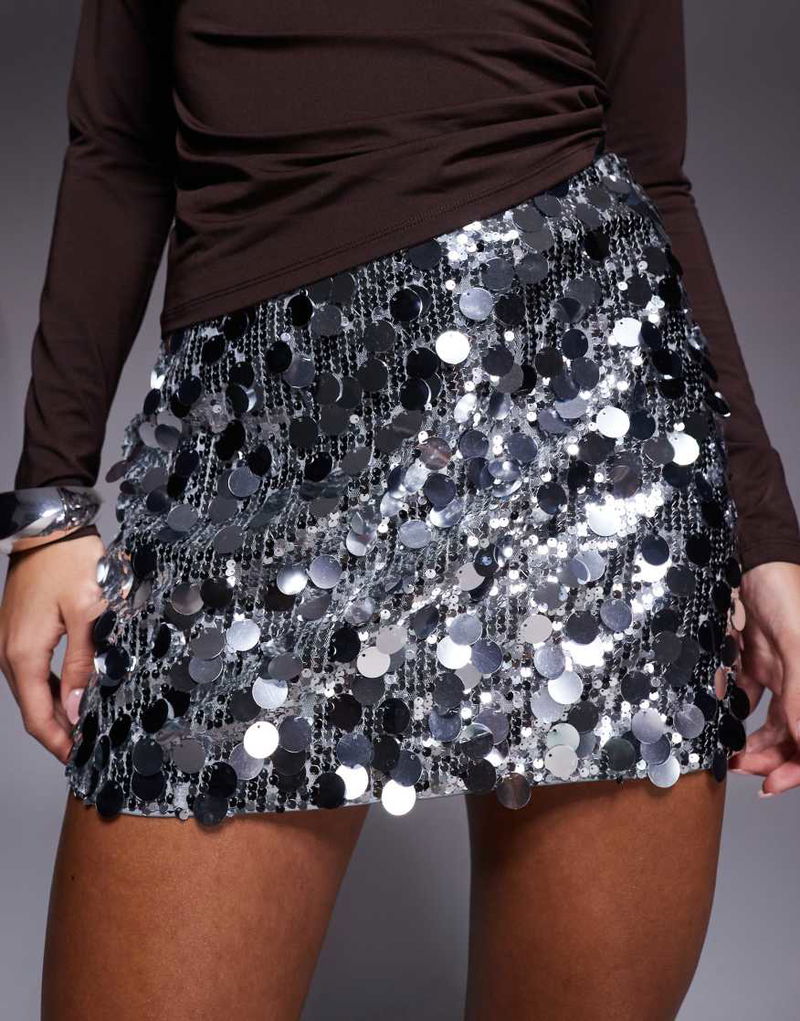Abercrombie & Fitch Ultra High Rise Scarlett Skort In Silver Sequins
