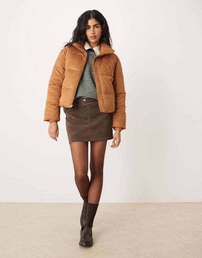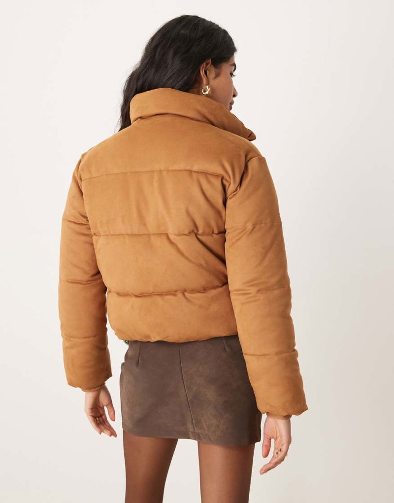 Abercrombie & Fitch Vegan Suede Short Puffer Jacket In Camel