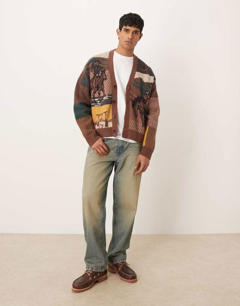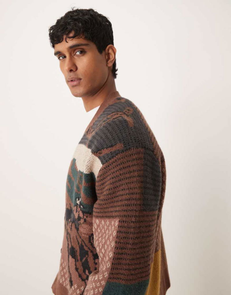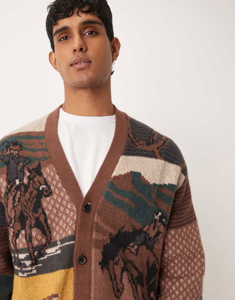 Abercrombie & Fitch Western Graphic Cardigan In Brown