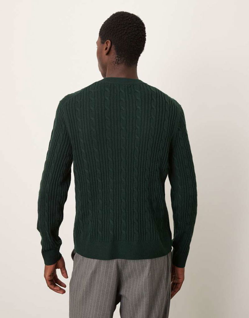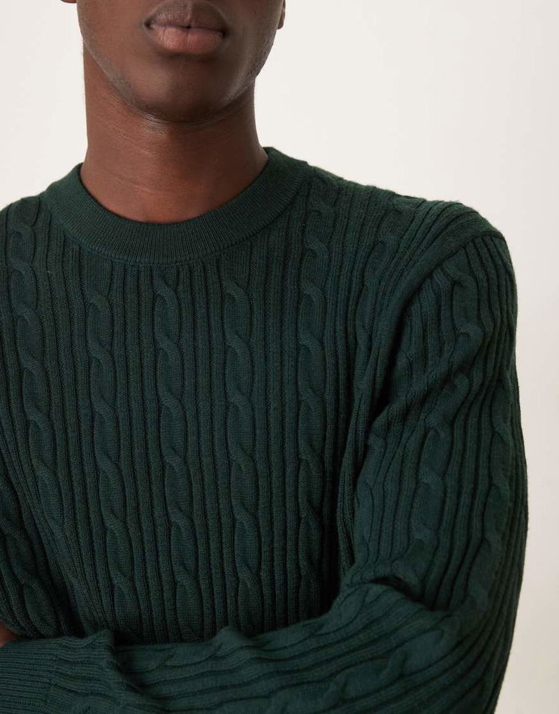 Abercrombie & Fitch Wool Blend Cable Knit Jumper In Dark Green