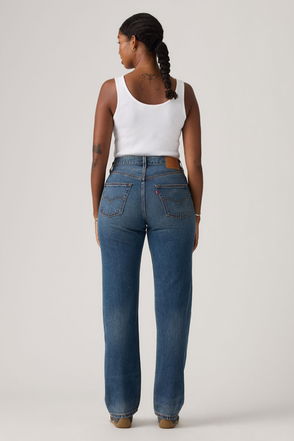 Relaxed fit High rise Belt loops Five pockets Ripped knees.