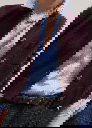 Cosy, meet chic V-neck Button placket Long sleeves Slim fit.