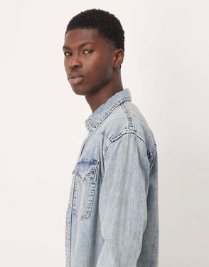 Spread collar Button placket Long sleeves Chest pocket Regular fit