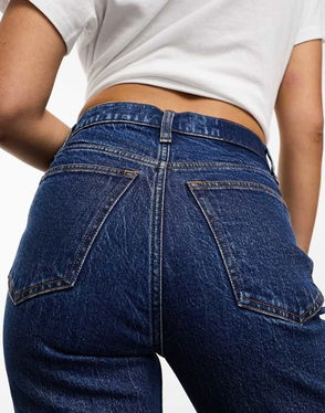 Sorry to all your other denim Regular mom fit High rise Belt loops Five pockets.