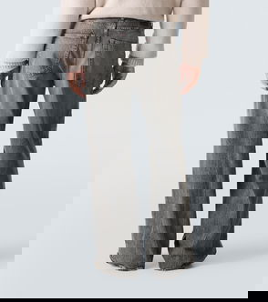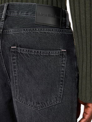 Relaxed-fit non-stretch organic cotton denim jeans. Fading throughout. · Belt loops and detachable cinch belt· Five-pocket styling· Button-fly· Leather logo patch at back waistband· Logo-engraved antiqued copper-tone hardware.