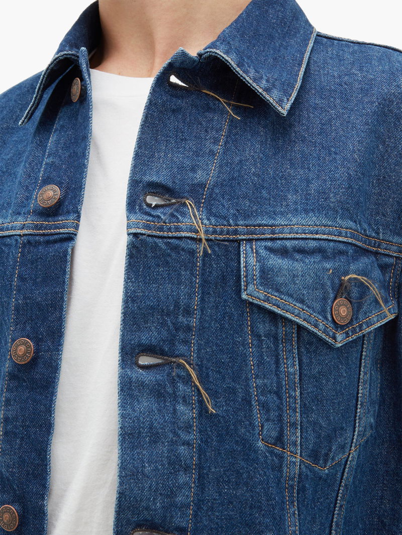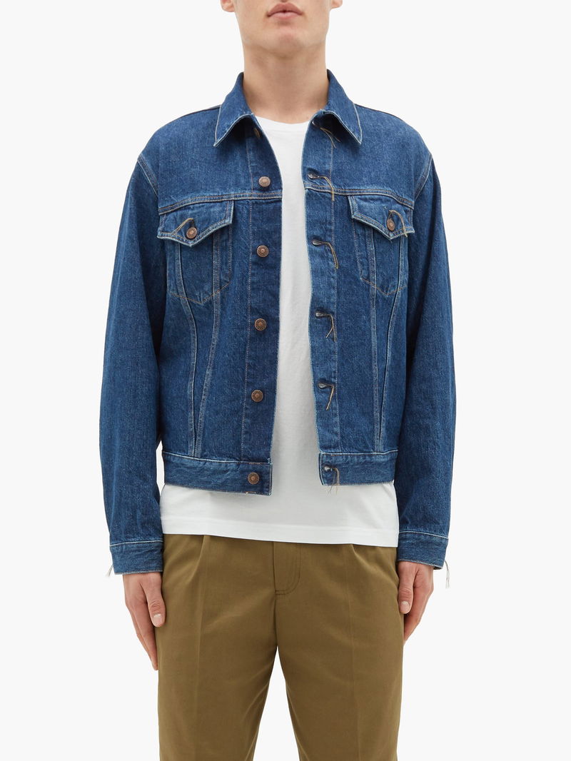 Acne Studios’ 1998 jacket is cut from organic-cotton denim treated with a dark blue stone wash, lending a vintage finish. It’s constructed in Italy to a traditional silhouette with buttoned patch pockets, cuffs and front and the buttonholes are left unfinished for a subtly directional slant that's true to the label’s aesthetic.