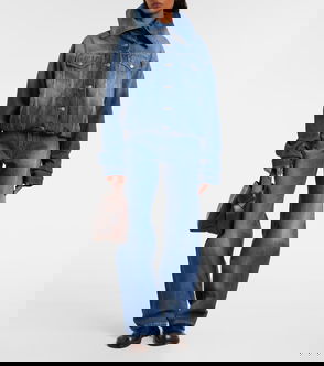 Flared garment-dyed non-stretch organic cotton denim jeans. Fading and whiskering throughout.· Low-rise· Belt loops and detachable cinch strap· Five-pocket styling· Button-fly· Leather logo patch at back waistband· Logo-engraved silver-tone hardware.