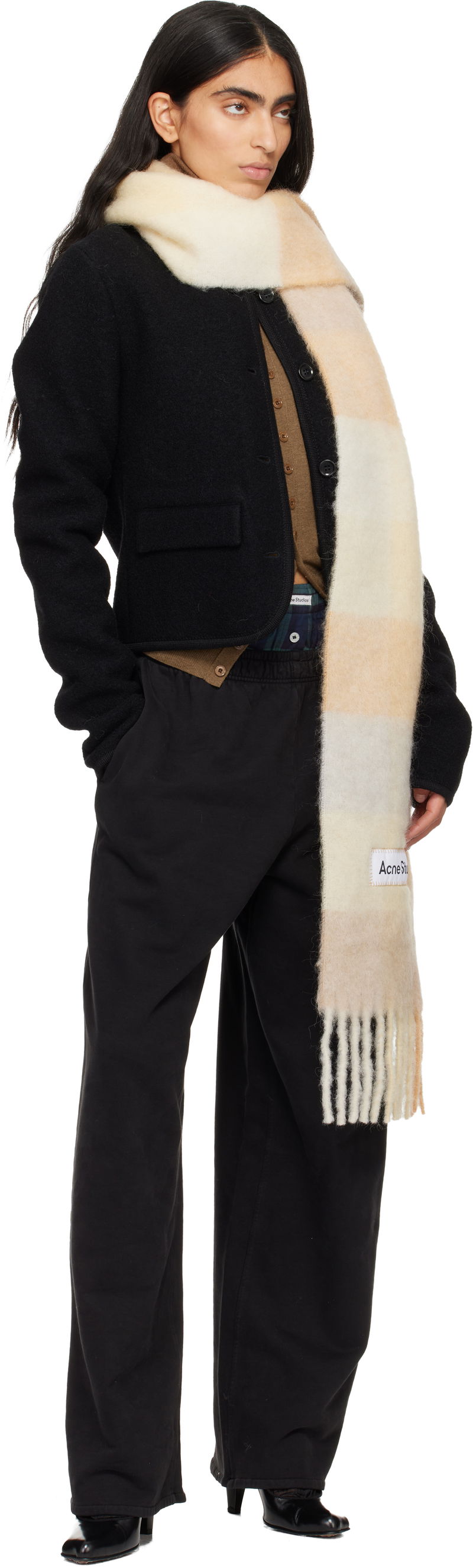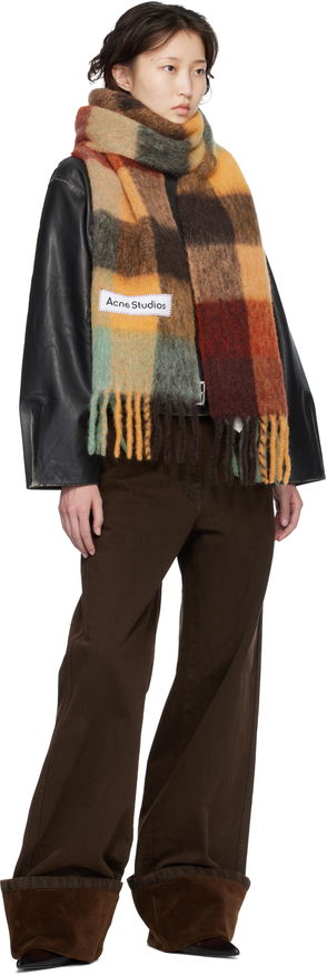 · Check pattern throughout · Logo patch at face · Fringed detailing at ends · L108" x W11"