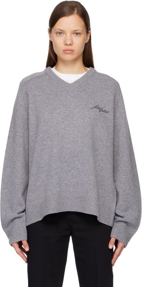 Knit stretch nylon cardigan. Fading and inverted seams throughout. · Rib knit crewneck, hem, and cuffs· Button closure· Logo printed at back collar.