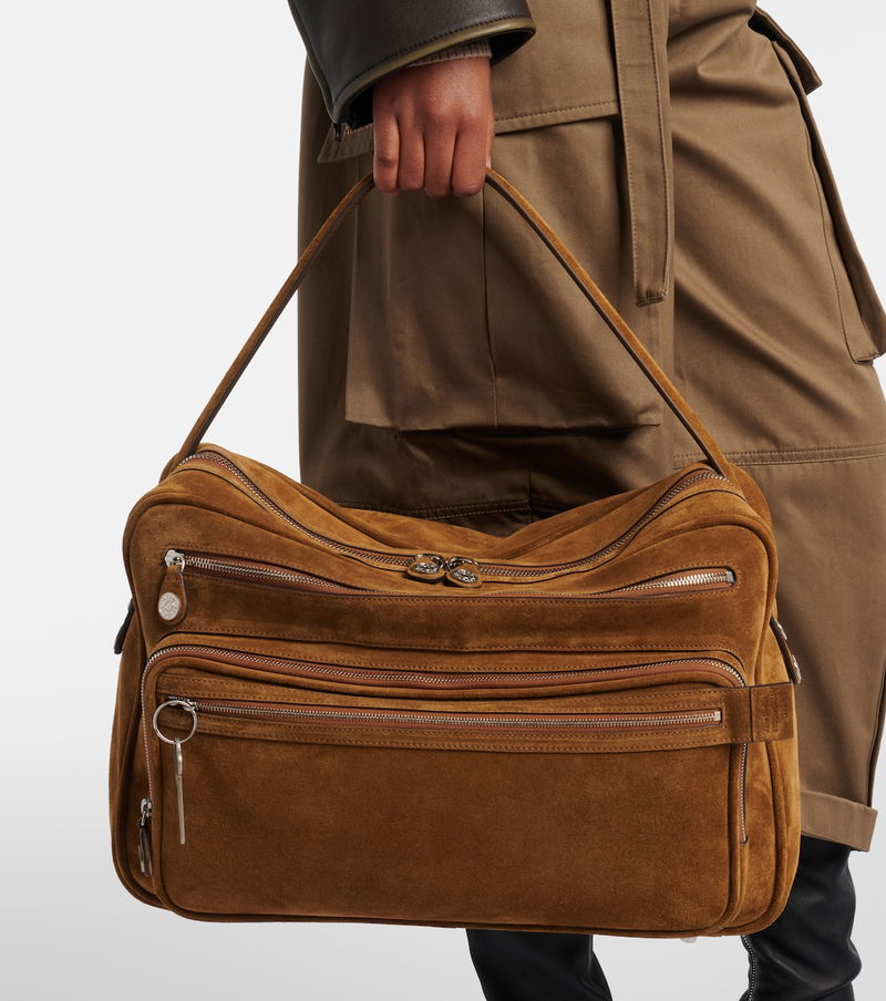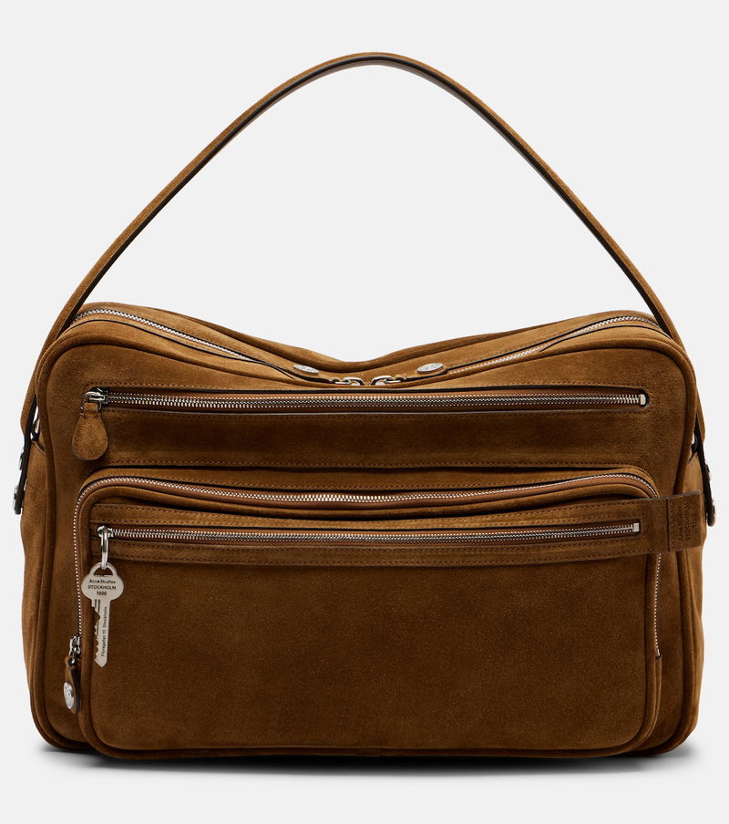The Camero Camera Large shoulder bag from Acne Studios is made from brown suede for a velvety finish. Equipped with an adjustable strap, the design comes with multiple zipped pockets and a key charm.