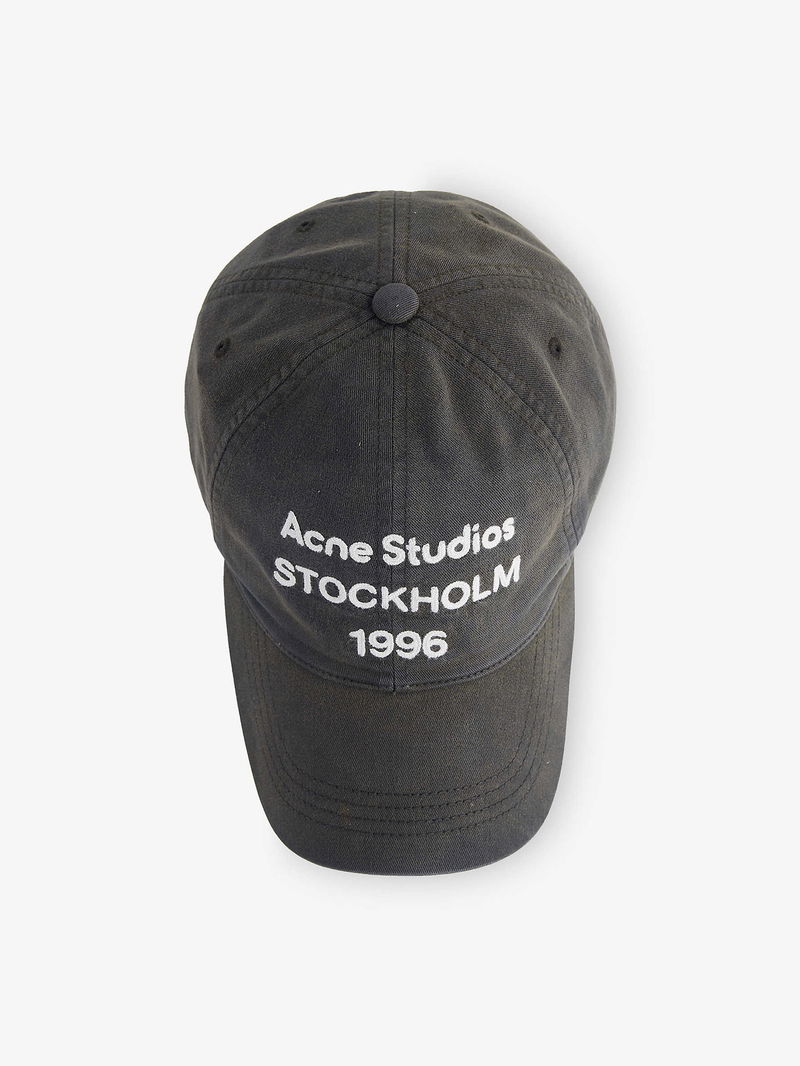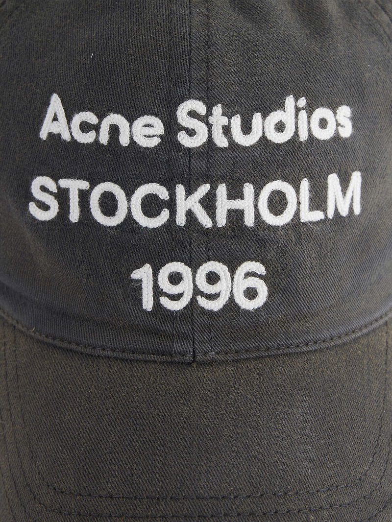 Acne Studios cotton cap. Strap fastening at back. Round crown, curved peak, embroidered logo at front.