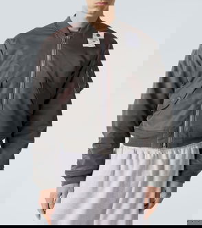 Brushed cotton twill jacket. Check pattern throughout. · Drawstring at cotton jersey hood · Button closure · Embroidered logo patch at chest· Flap pockets · Tennis-tail hem · Full cotton jersey lining.