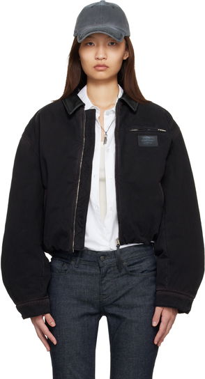 Insulated grained faux-leather bomber jacket.· Relaxed-fit· Spread collar· Zip closure· Seam pockets· Cropped elasticized hem· Dropped shoulders· Rib-knit cuffs· Rubberized logo patch at back· Welt pocket at interior· Full viscose twill lining.