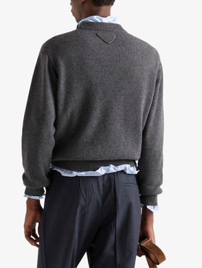 Worsted knit cashmere sweater.· Rib-knit crewneck· Patch pocket at chest· Dropped shoulders· Logo patch at back collar.