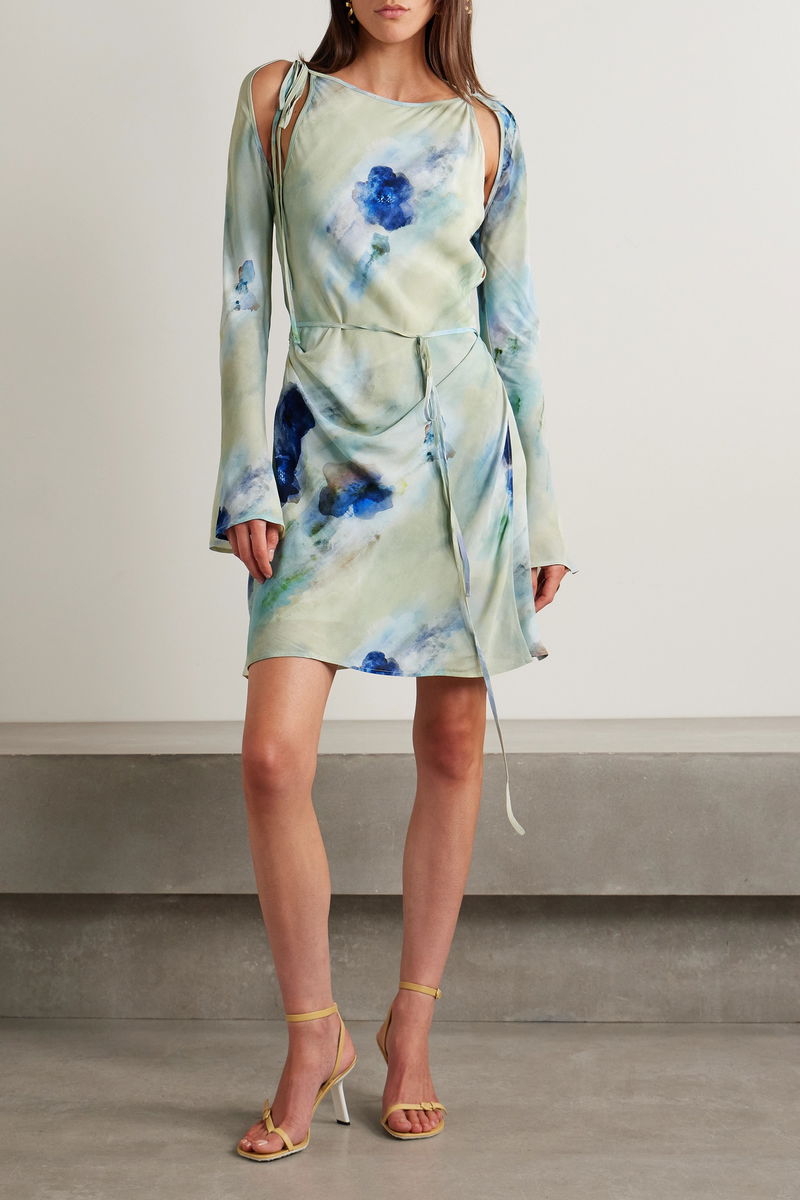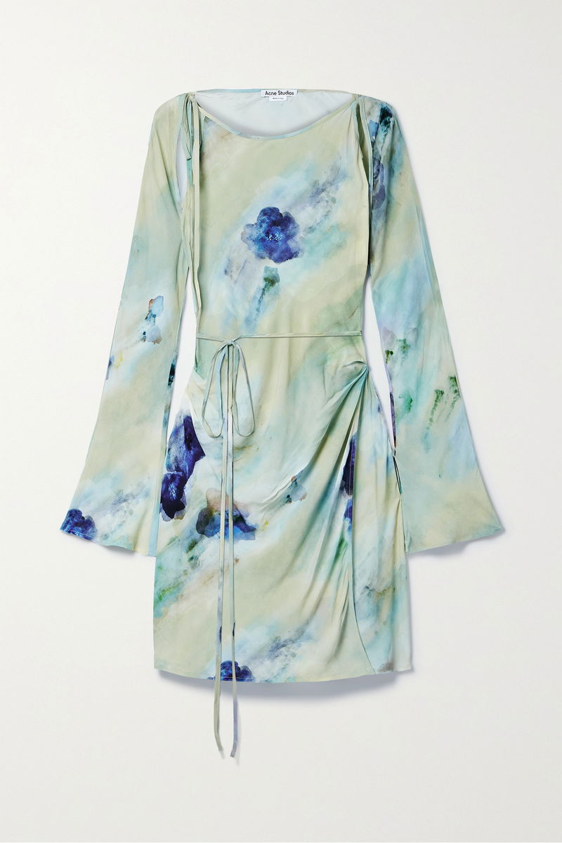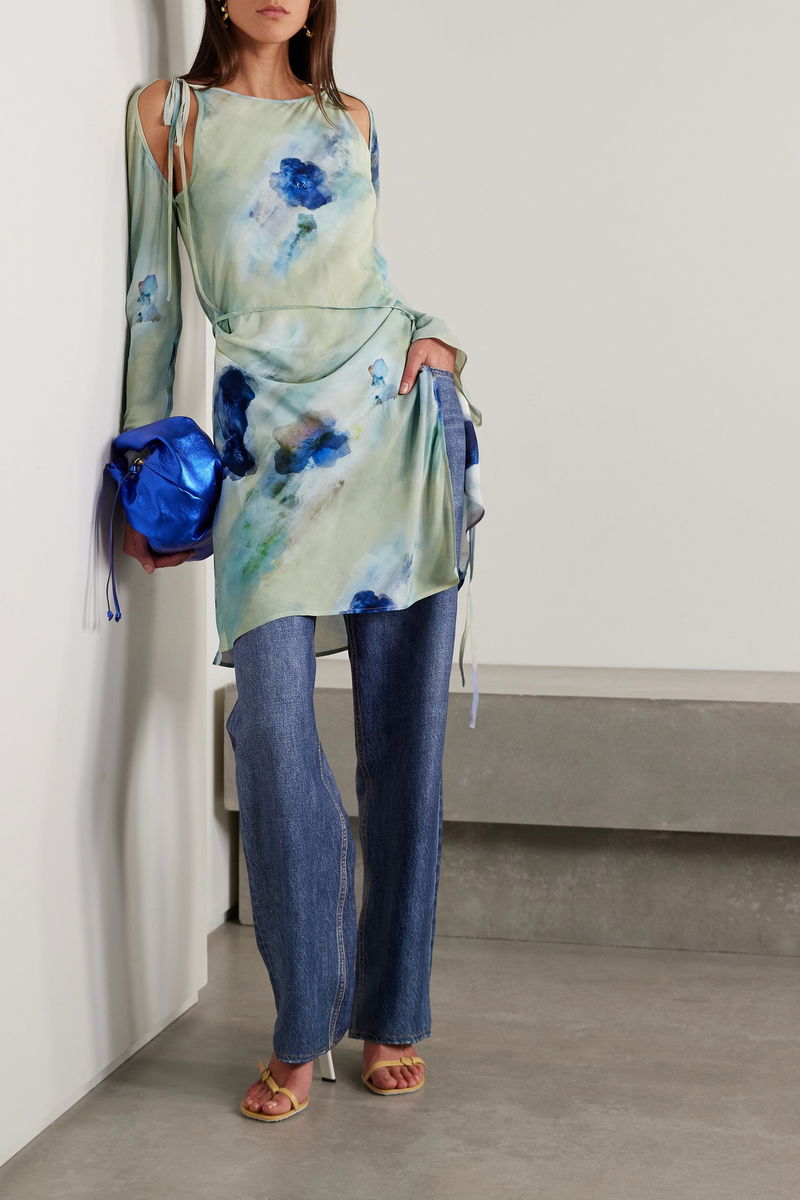 Acne Studios' dress is tie-dyed with a watercolor-like pattern that's interspersed with printed blooms. Made in Italy from lightweight crepe, it has shoulder cutouts and flared cuffs. Wear yours solo or layered over jeans.