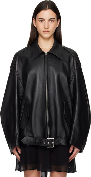 Padded grained leather jacket. Distressing and fading throughout.· Notched lapel· Offset zip closure· Zip pockets· Cropped hem· Zip vent at cuffs· Logo embossed at back collar· Welt pockets at interior· Full quilted satin lining · Logo-engraved antiqued silver-tone hardware.