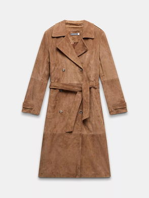 Acne Studios reimagines a British heritage style to create this brown trench coat, made from distressed leather to a collarless silhouette.