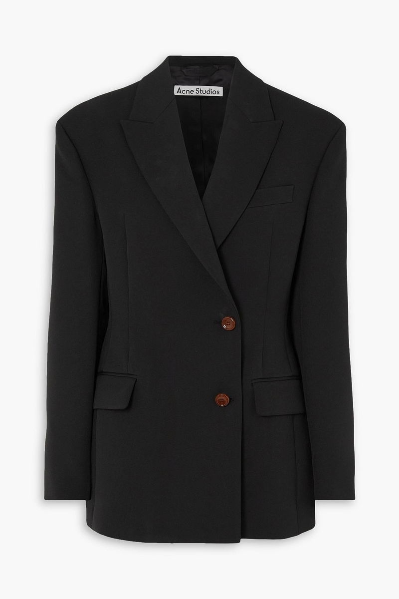 Blazer, Gabardine, Buttoned cuffs, Breast pocket, Two front flap pockets, Button fastenings through double-breasted front, Fully lined, Back vent, Non-stretchy fabric, Mid-weight fabric.