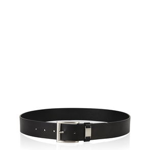 Buffed calfskin belt in black. · Logo plaque at post-stud fastening · Keeper loop at length ·