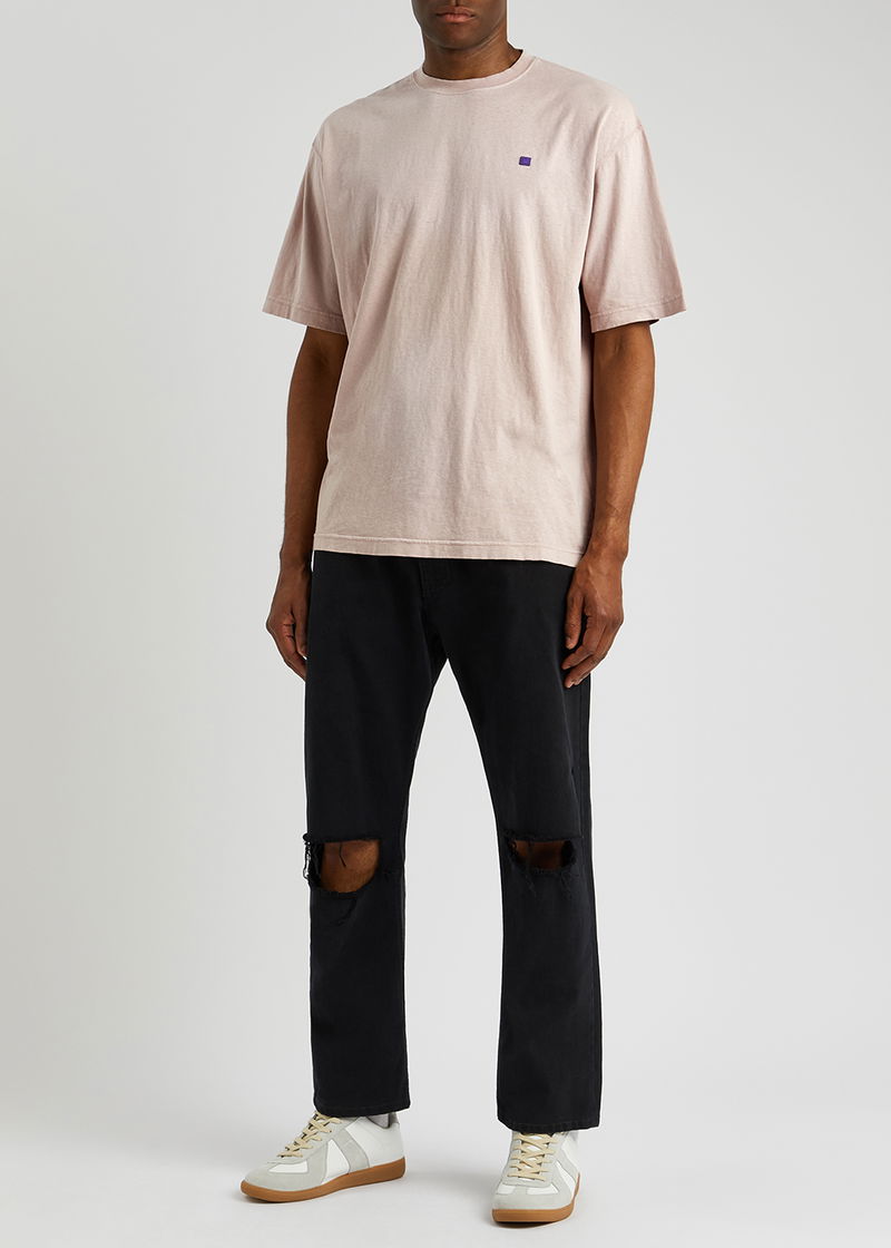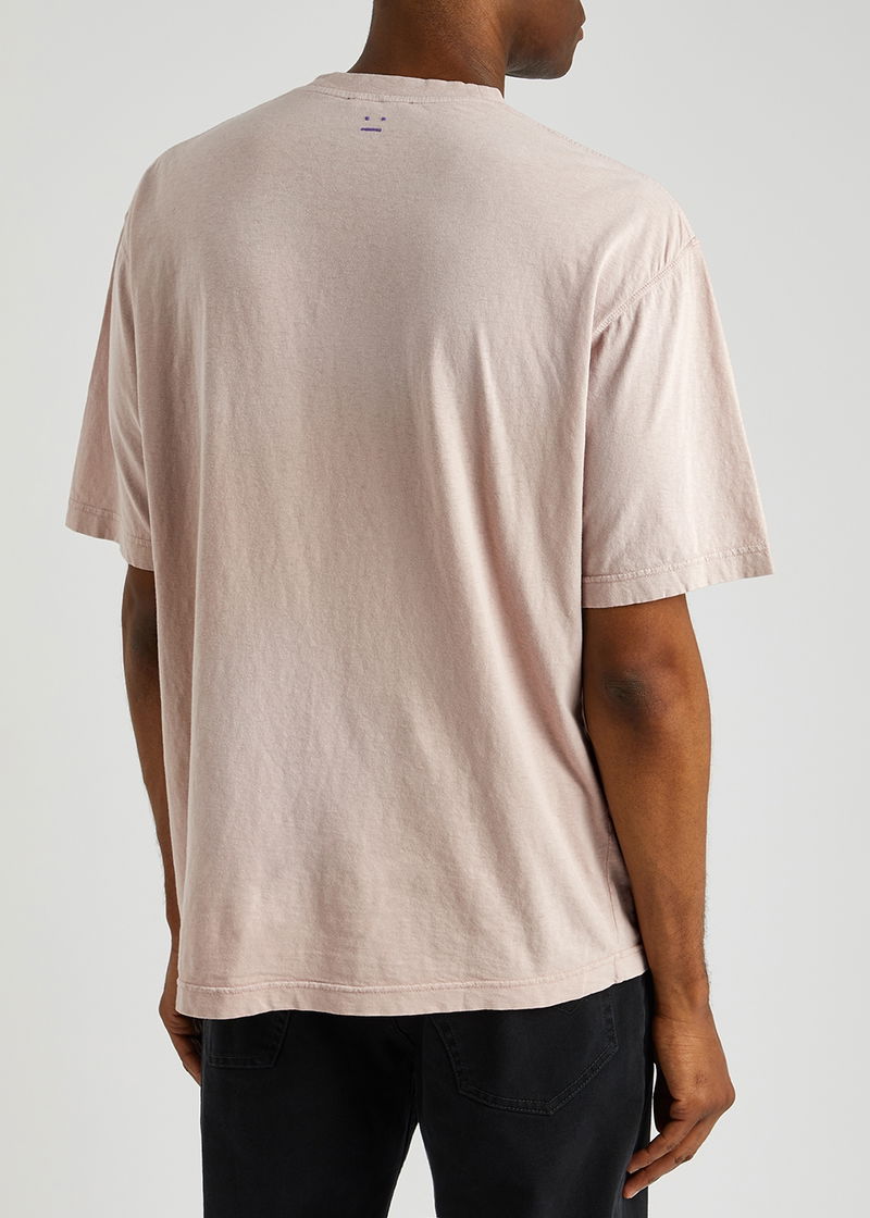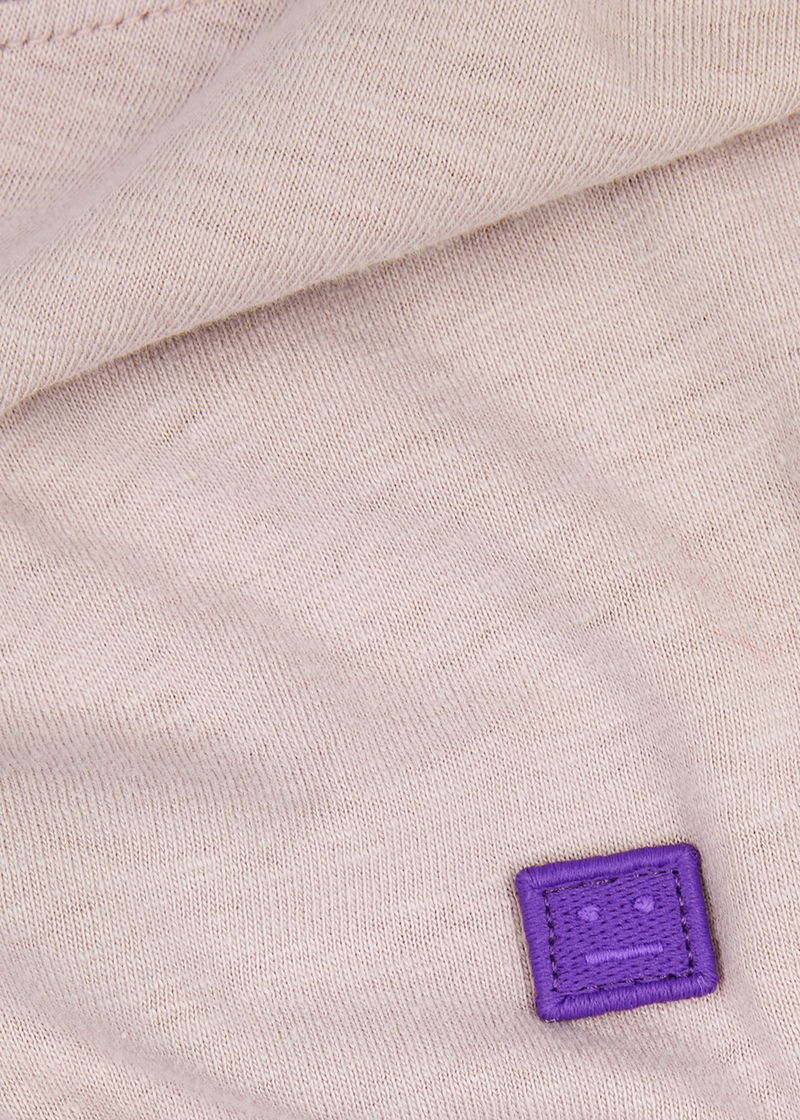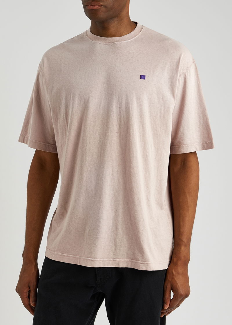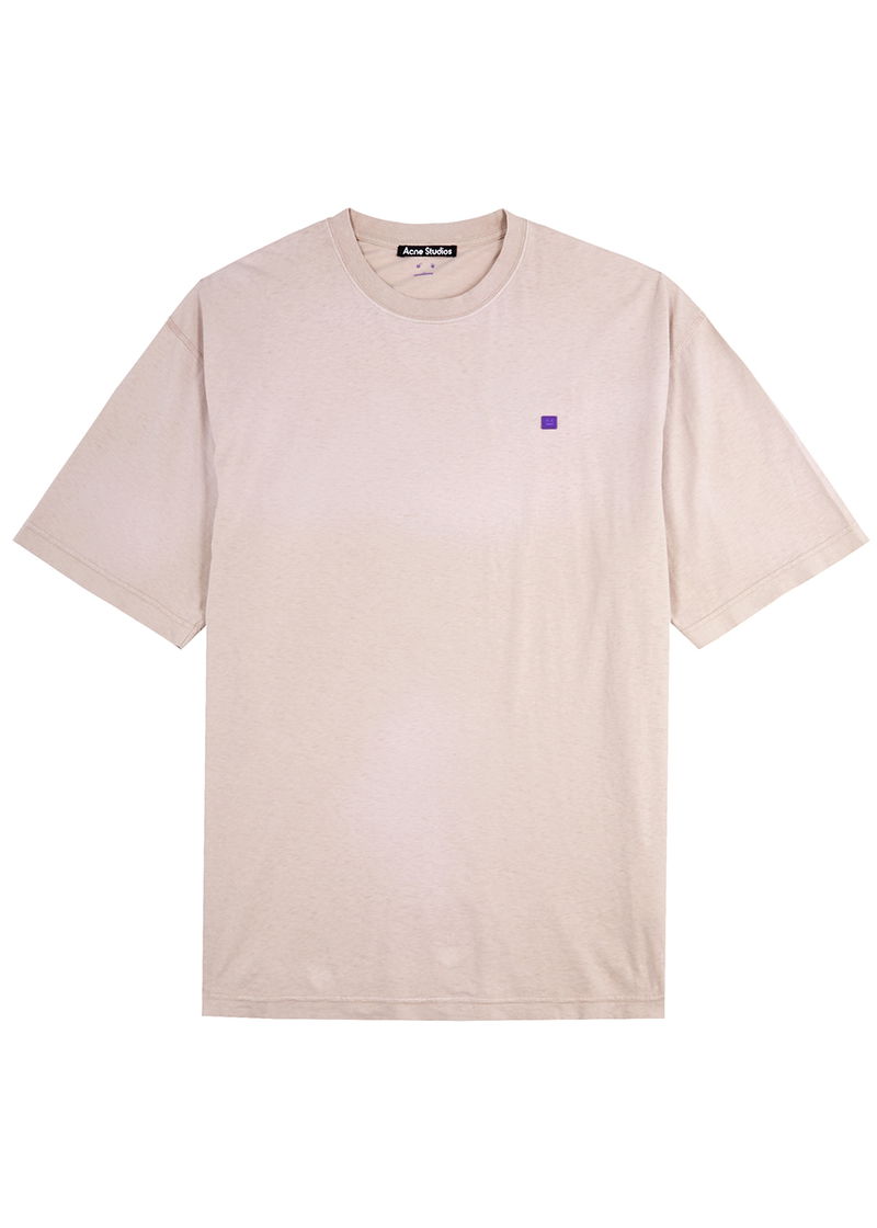 Acne Studio cotton T-shirt. Ribbed crew-neck, mini signature smiley face plaque, dropped shoulders, embroidered face at back neck. Slips on.