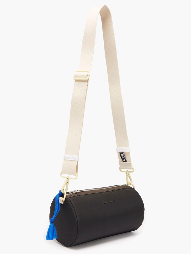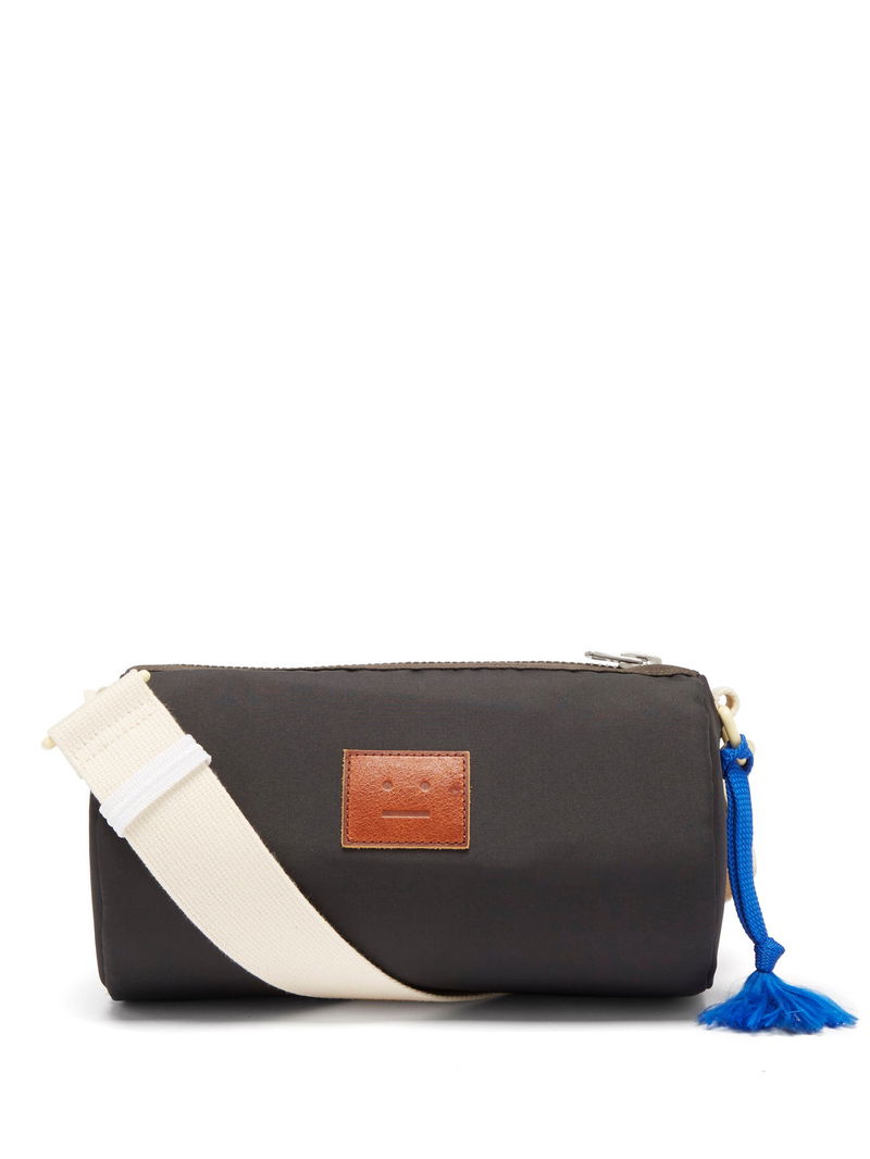 Acne Studios’ black wash bag comes with a detachable, adjustable white canvas strap to wear around your shoulder for days on the go. It’s made from water-resistant nylon canvas accented with a brown suede face trim and blue tassel zip pull.