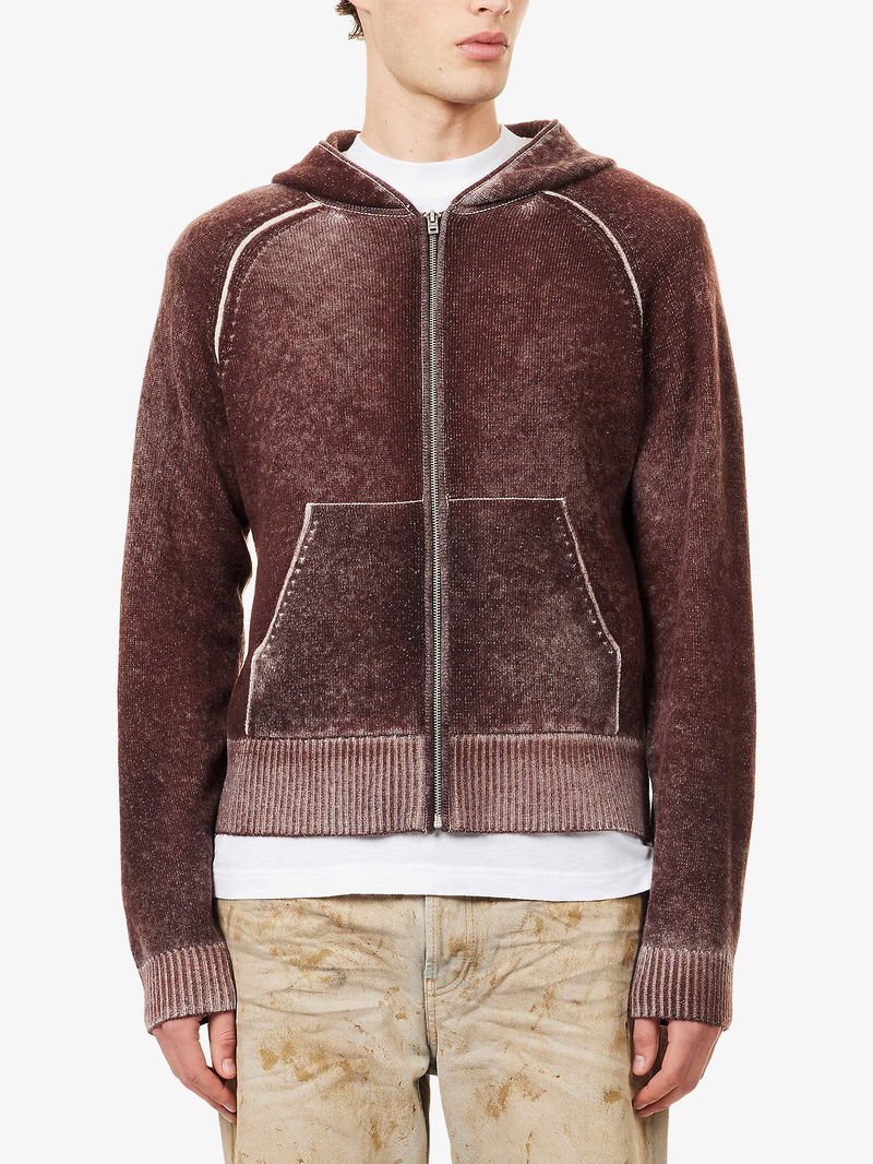 Faded-Wash Hooded Cotton, Wool And Cashmere Blend Hoody