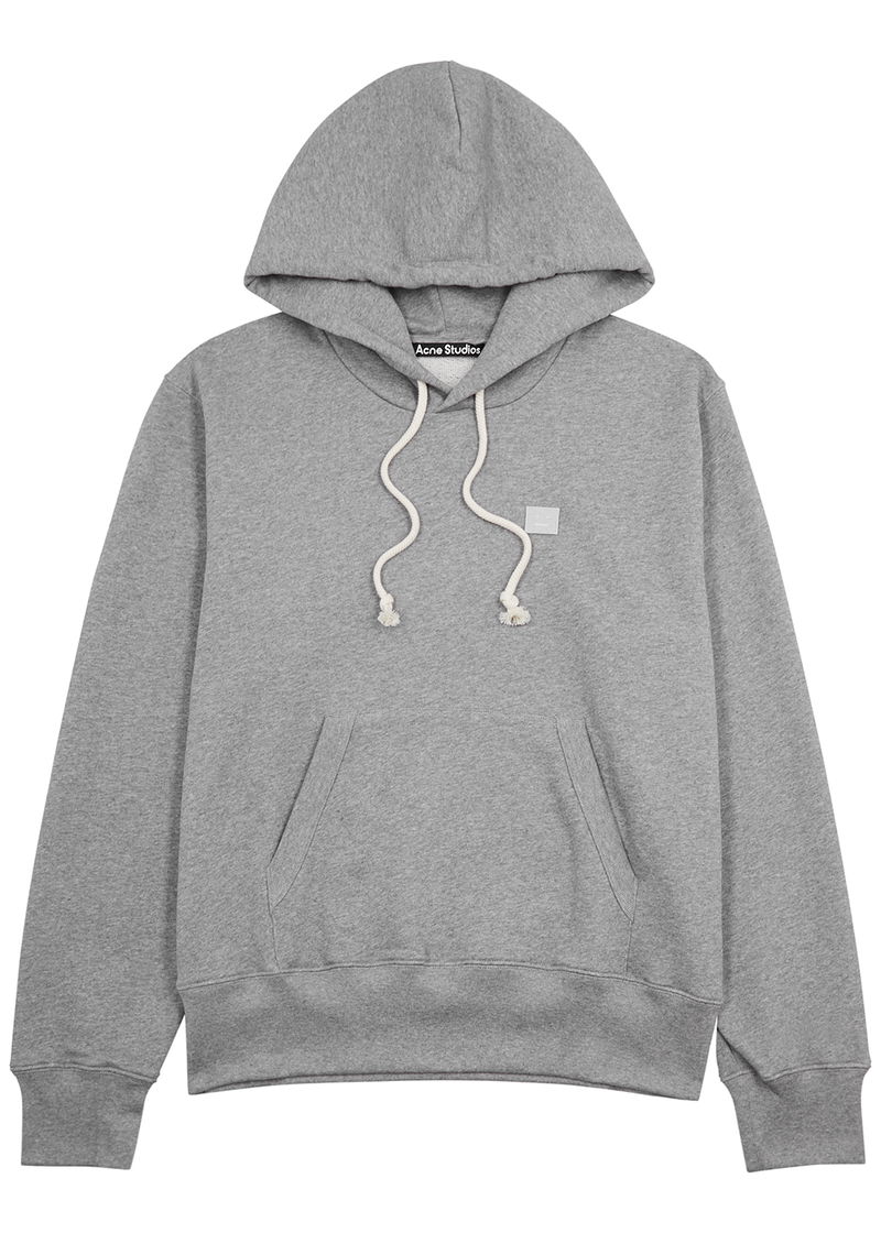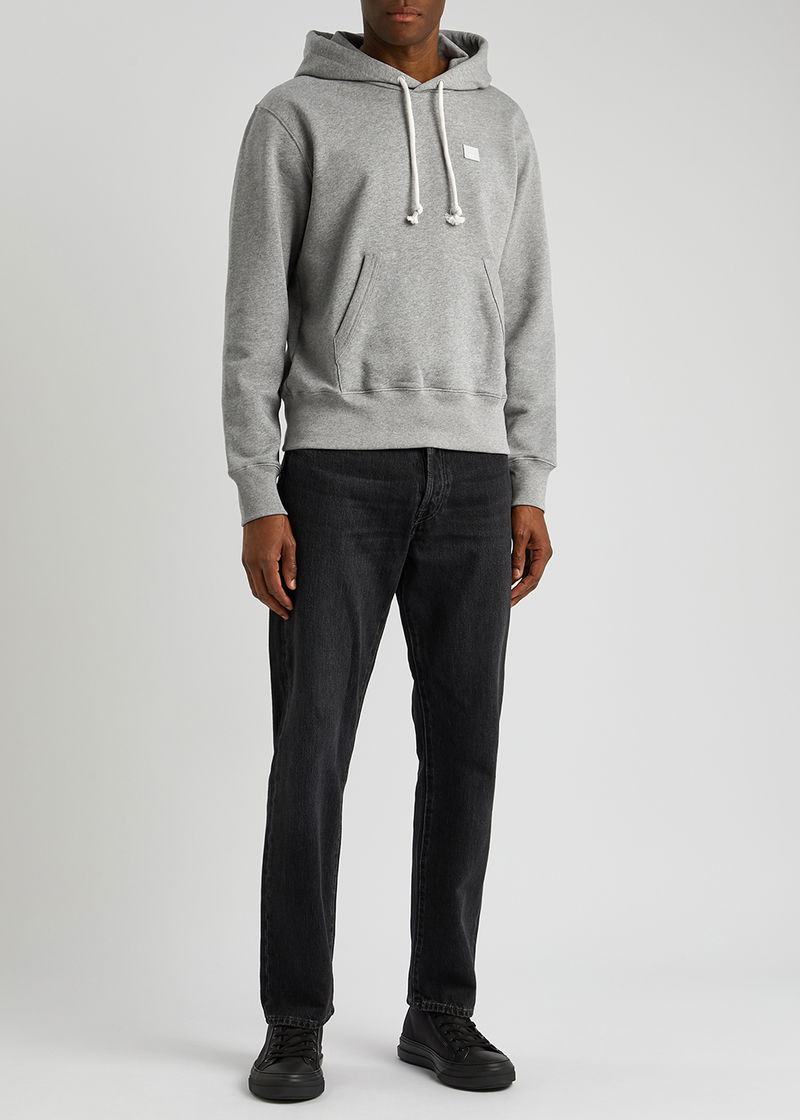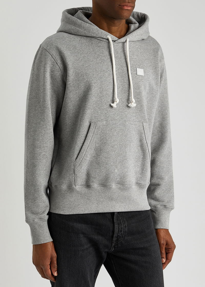 Acne Studios cotton sweatshirt. Drawstring hood, dropped shoulders, signature smiley face logo appliqué, pouch pocket, ribbed trims.