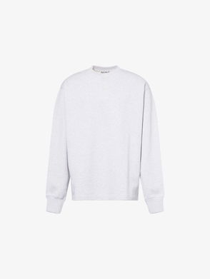 With dropped shoulder seams and a front kangaroo pocket, Acne Studios' grey melange Ferris Face hooded sweatshirt has an understated sporty feel. It's cut from soft, brushed, cotton jersey to a relaxed silhouette and accented by an appliqué patch depicting the label's signature face motif, meaning 'lagom' in Swedish – 'not too happy, not too sad'. Fits true to size. Product number: 1253303