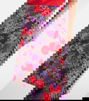 Flared polyester crepe trousers. Floral pattern throughout. · Detachable self-tie belt and belt loops· Concealed zip closure at outseam· Unlined.