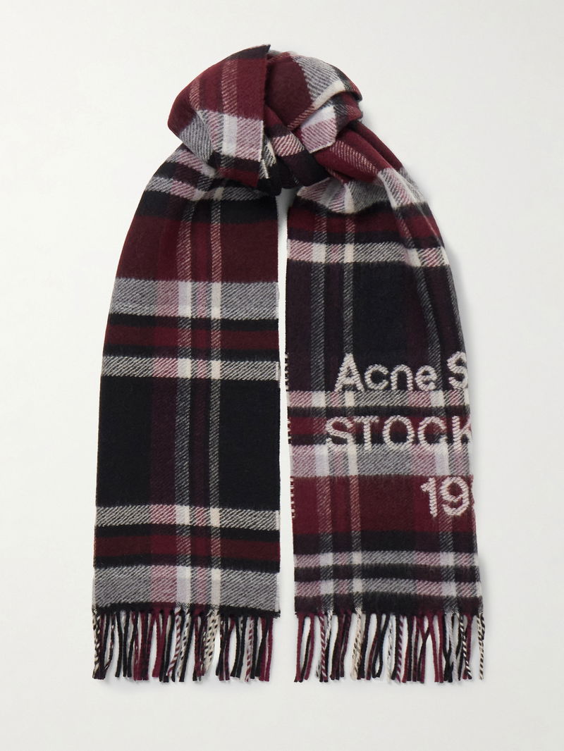 Acne Studios' scarf is woven with an enlarged version of the brand's logo and founding year. It's made from wool-blend with a checked pattern and has fringed ends.