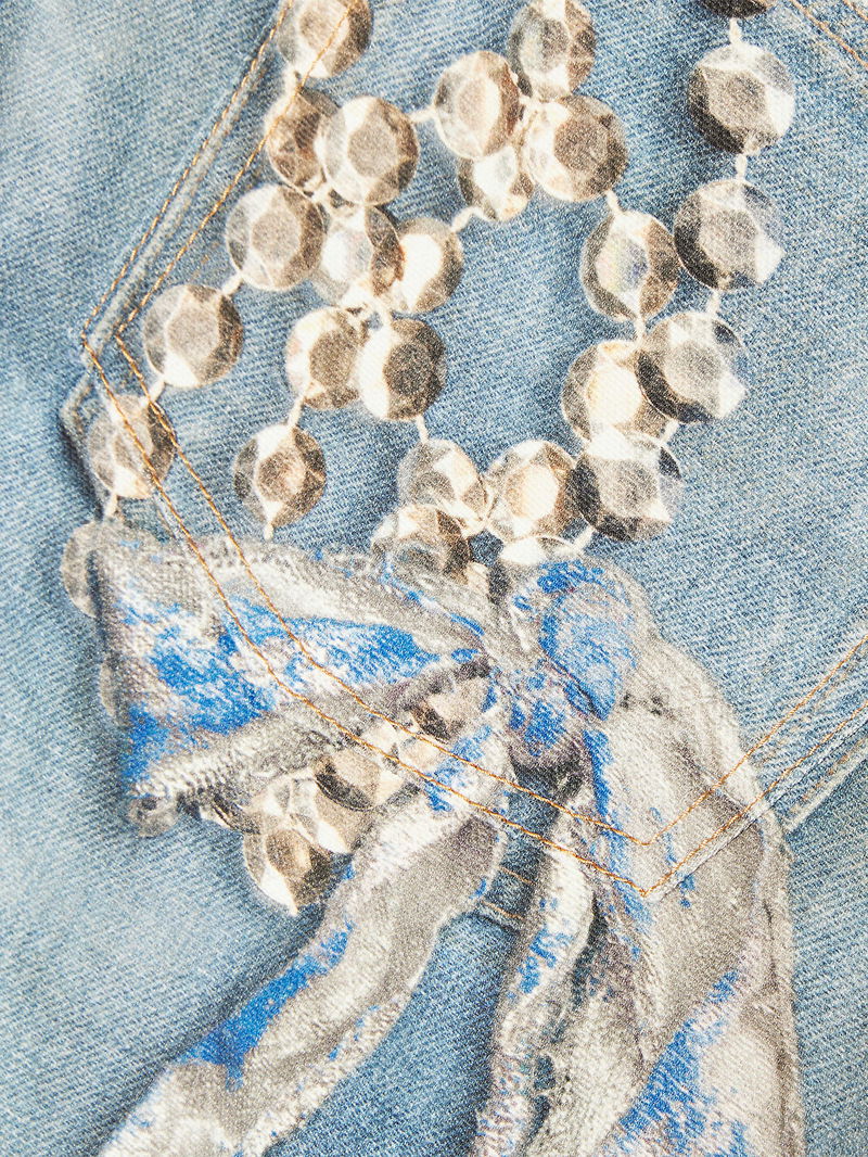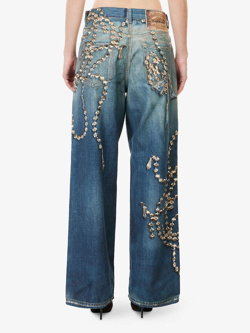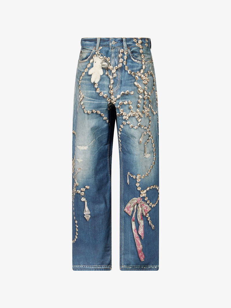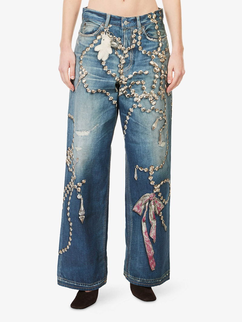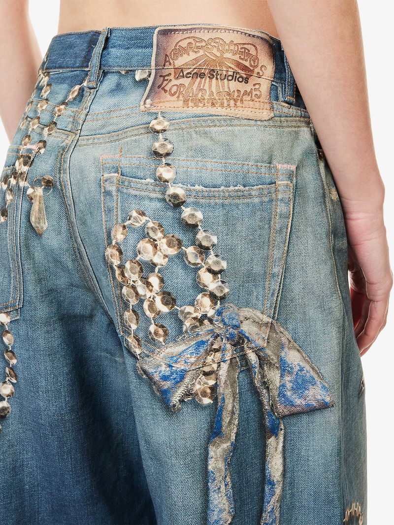 Graphic-Print Wide-Leg Denim Jeans