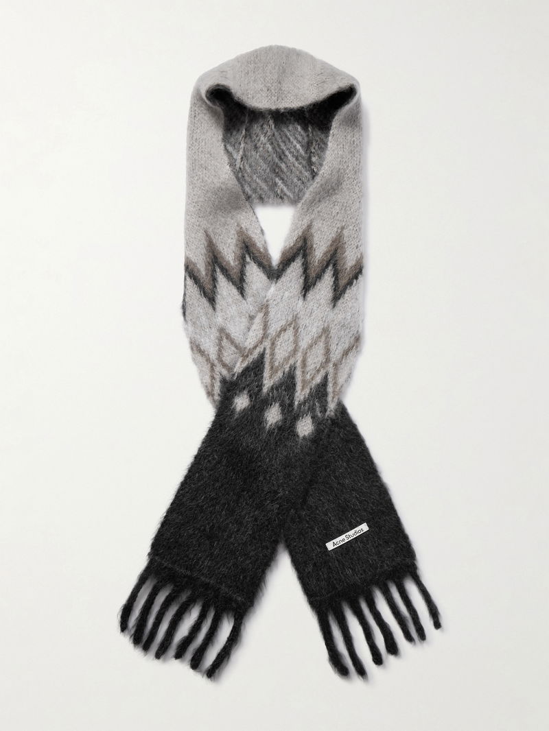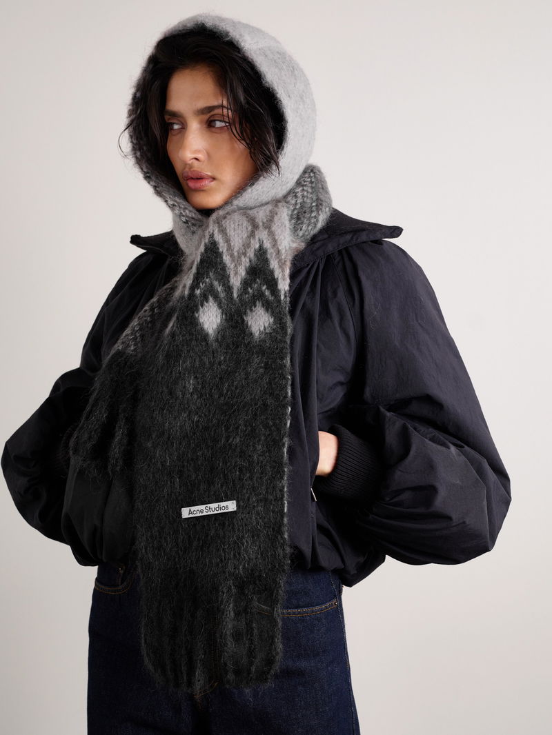 Bundling up in Acne Studios' scarf on chilly days feels like an indulgence, not a necessity. Knitted from soft mohair and wool-blend, it has an integrated hood for optimal coverage, fringed ends and an appliquéd logo patch.