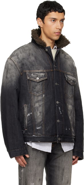 Non-stretch organic cotton denim shirt. Fading and jacquard logo graphic pattern throughout.· Spread collar· Button closure· Shirttail hem· Dropped shoulders· Single-button barrel cuffs· Logo flag at back yoke· Logo-engraved silver-tone hardware· Contrast stitching in tan.