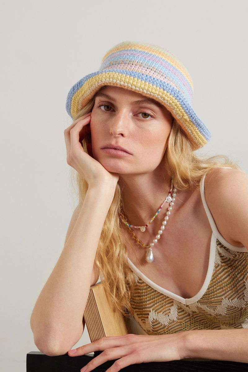 Acne Studios' hat takes its shape from bucket styles popular in the '90s. Crocheted from cotton with pastel stripes, it has a flexible shape and small brim that can be folded to adjust the coverage. Wear yours on sunny days at the beach.