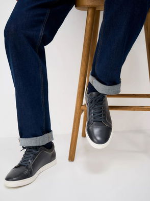 Low-top buffed lambskin and calfskin suede sneakers in white and gray.· Lace-up closure· Logo printed at padded tongue· Padded collar· Perforated detailing at inner side· Piqué lining.